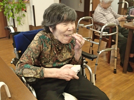 まずは皮むき。利用者の方に、剥いていただきました。指だけでも十分剥ける皮ですが…。