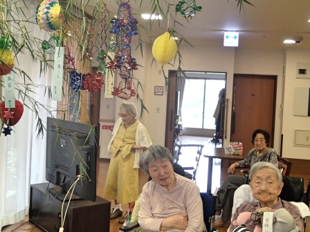 七夕と言えば、短冊。みどりの風鶴ヶ島の本館2階では、それぞれ、願い事を書いていただきました。