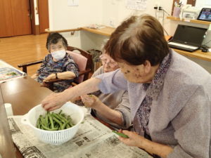 ここでも、経験豊かな方が大活躍!ここぞとばかりに、インゲンのヘタを取ります!