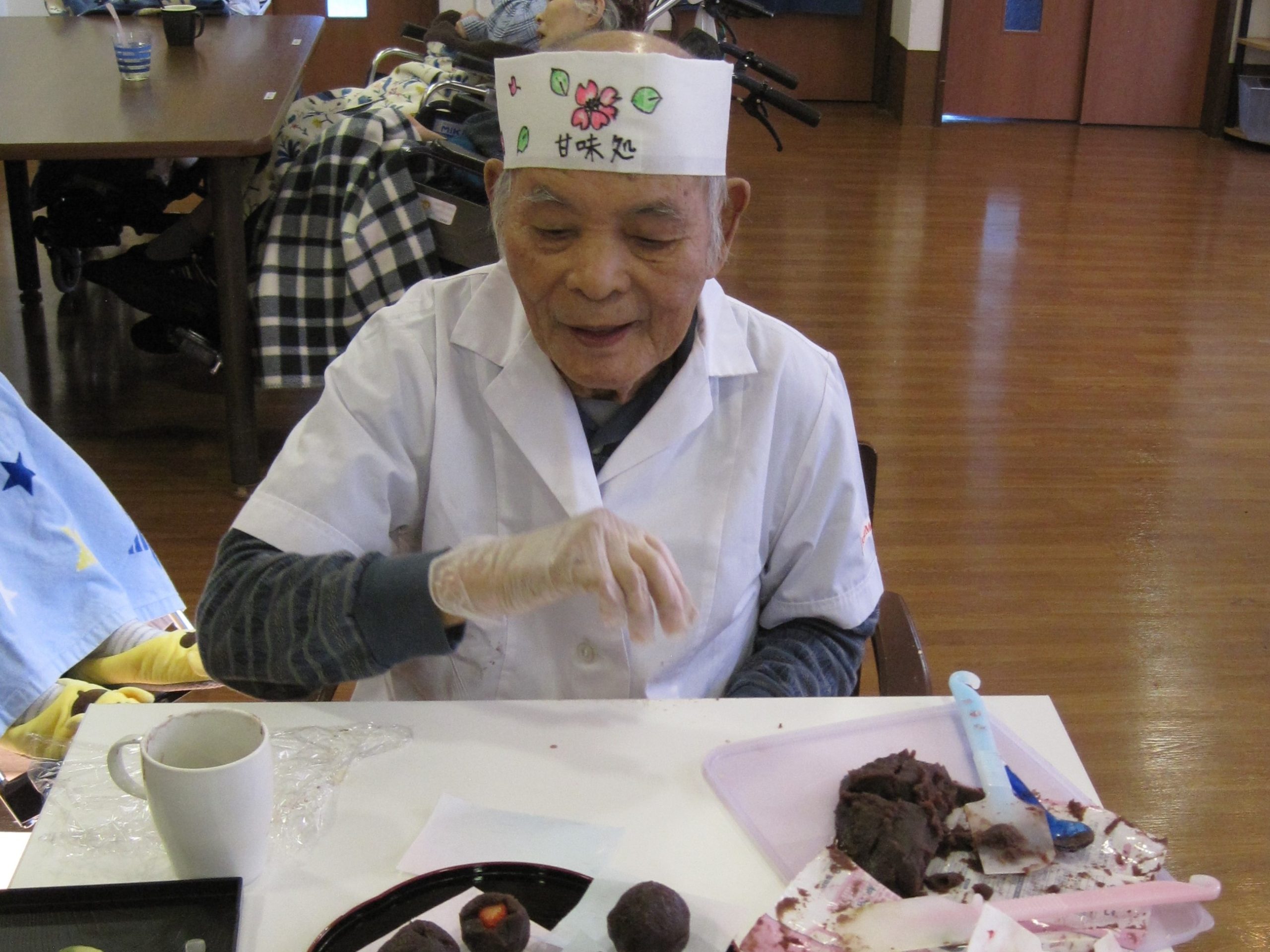 今回作ったのは、和菓子。場所は、本館3階、胡蝶・梅枝ユニット。