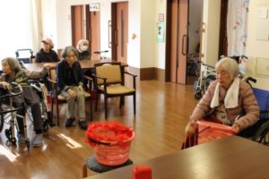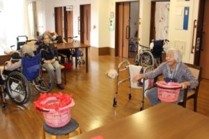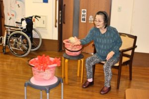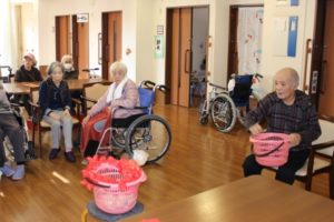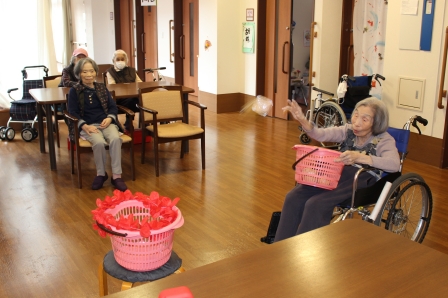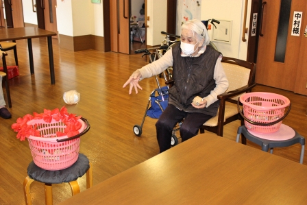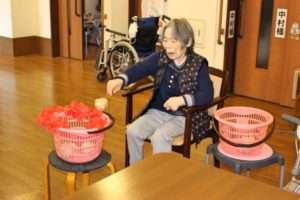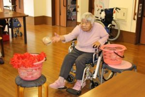 今日は本館3階、胡蝶・梅枝ユニットで、玉入れを行いました!