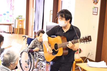 まずは歌!スタッフによるギターの生演奏に合わせ、明るい歌声が響き渡ります!