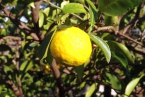 今年も小さな柚子が、黄色く色づいています