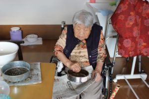 その胡麻の次の工程が、振るいかけ。行うのは、元農家のベテラン!