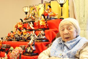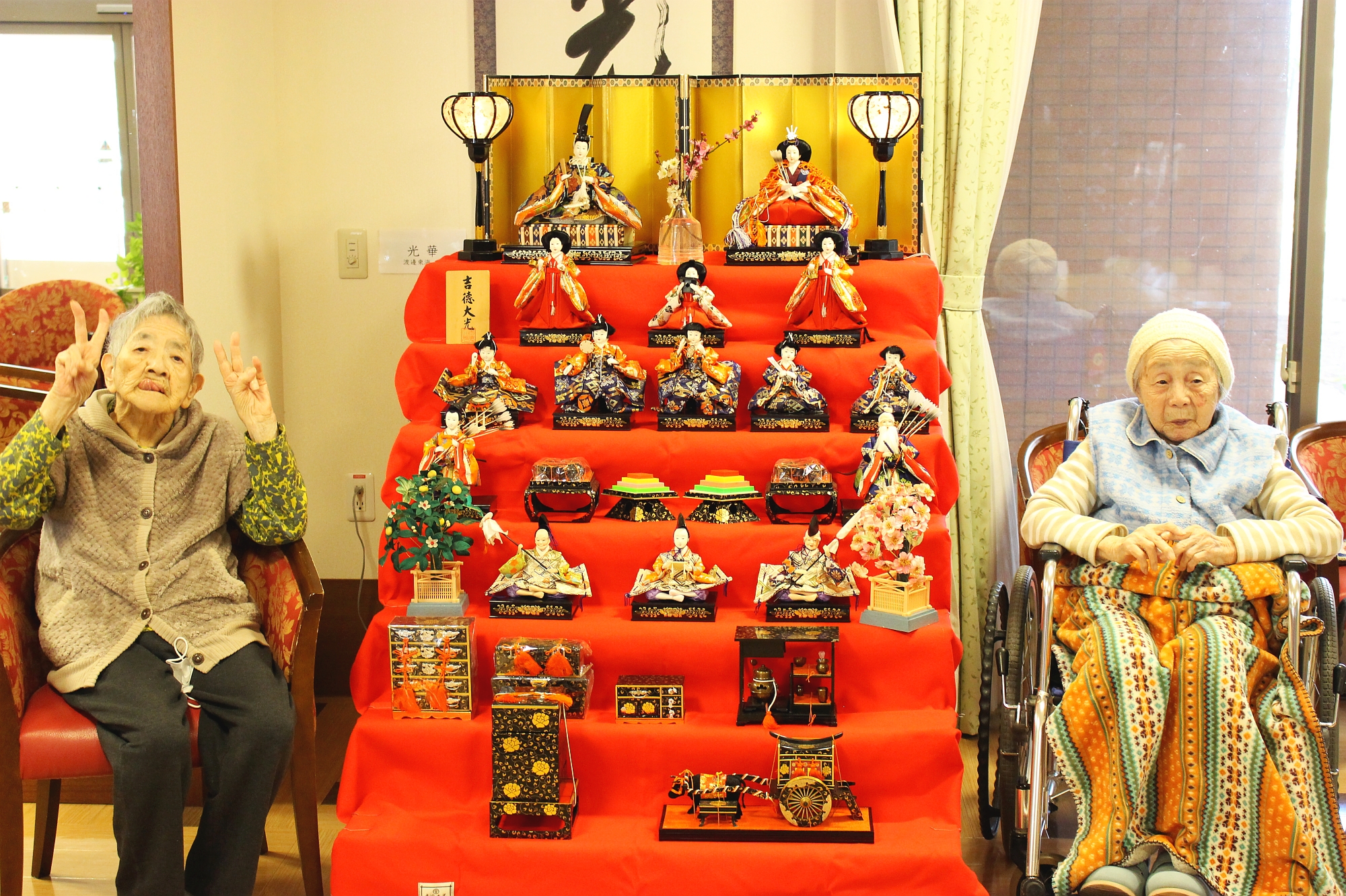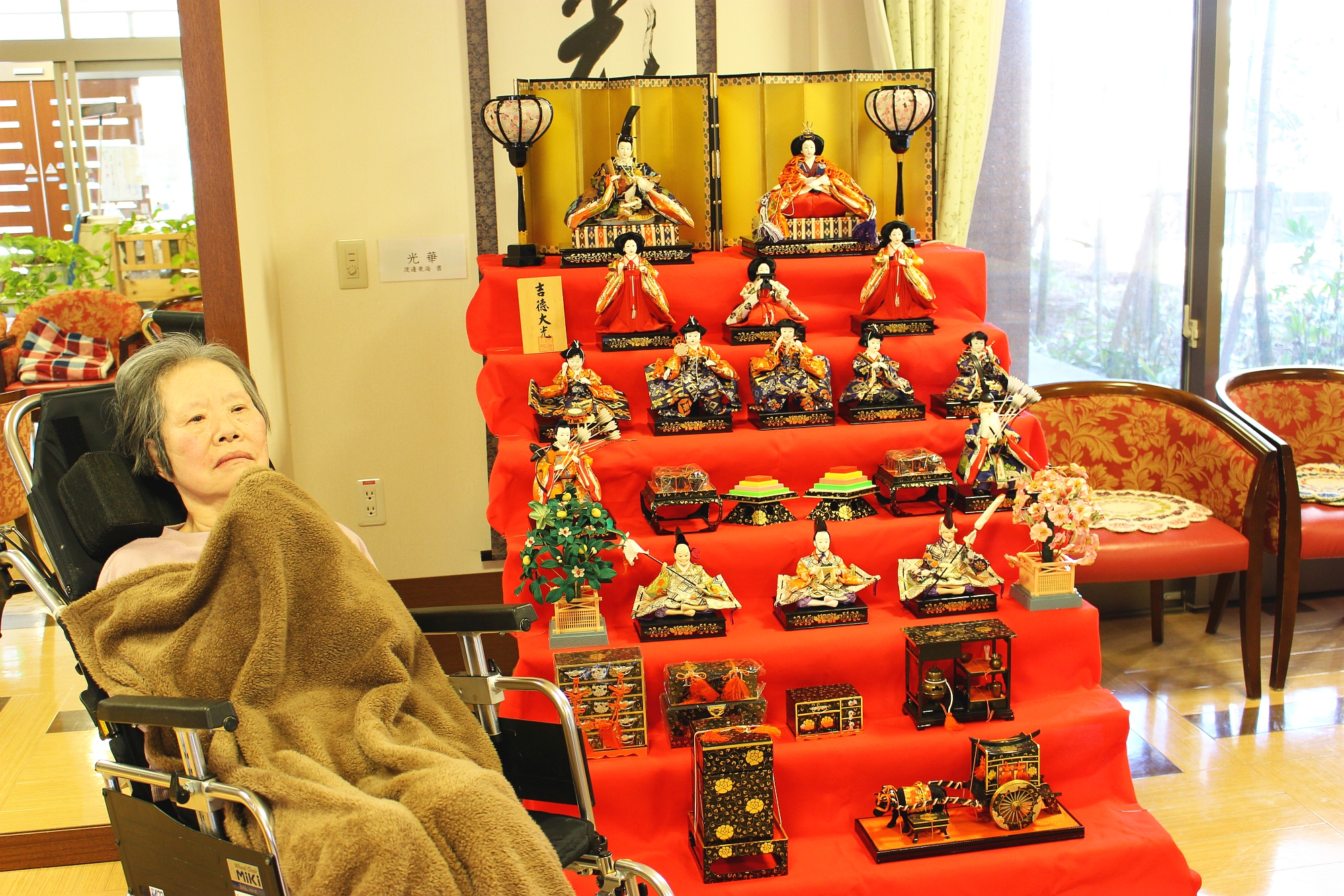 もうすぐひな祭り!みどりの風鶴ヶ島の地域交流室のおひな様には、毎日のように入居者の方が…