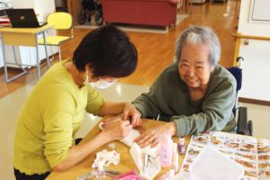 みどりの風鶴ヶ島 開設11周年記念のレクリエーション! 続いては、花と小鳥1階、さくらユニット
