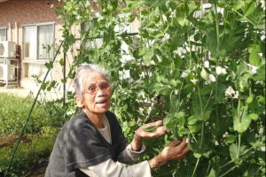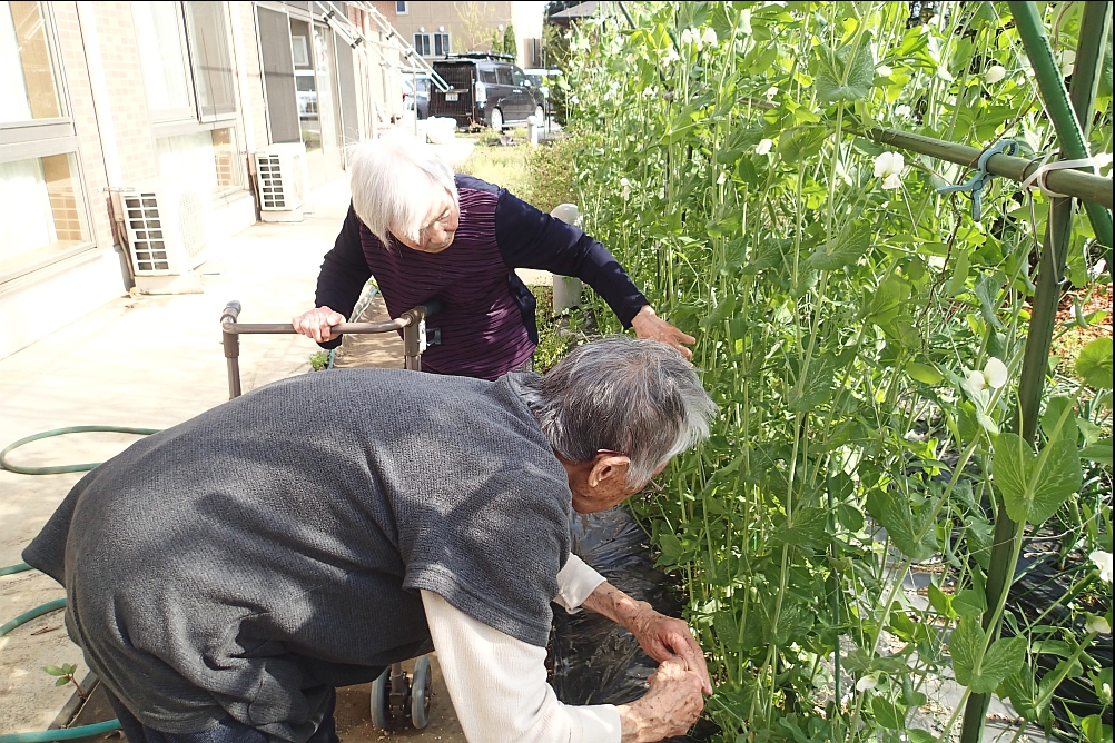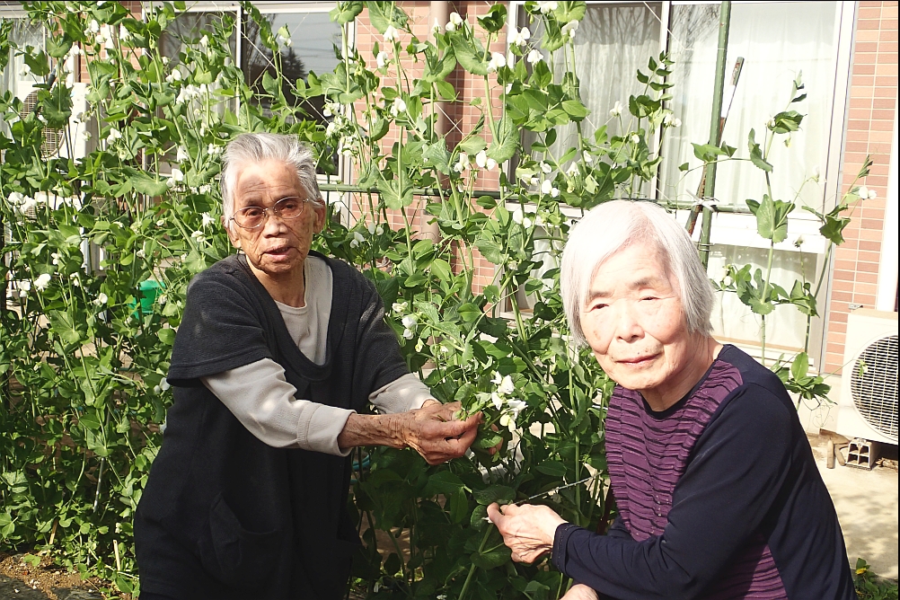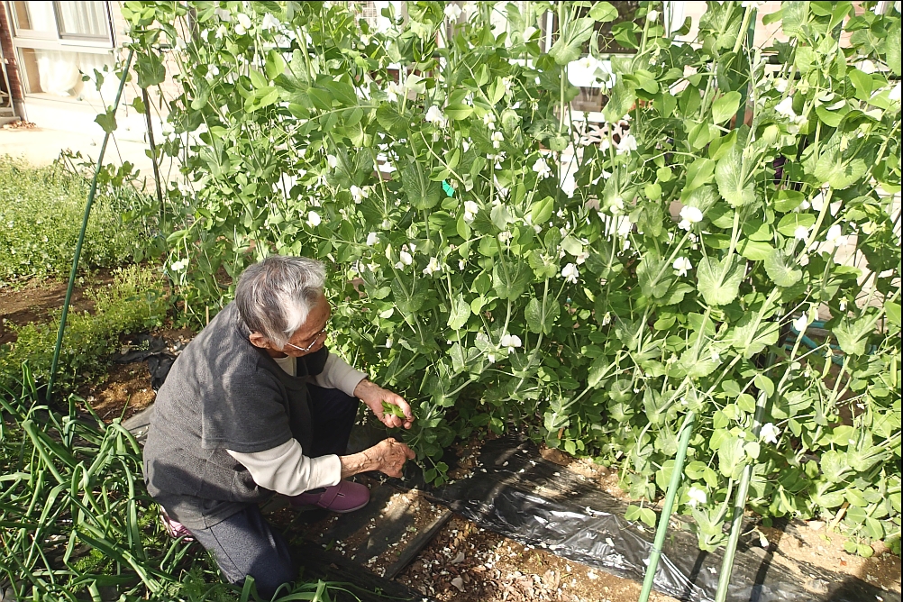 一方、こちらは野菜畑。2人で協力しながら、エンド豆を、収穫しました!