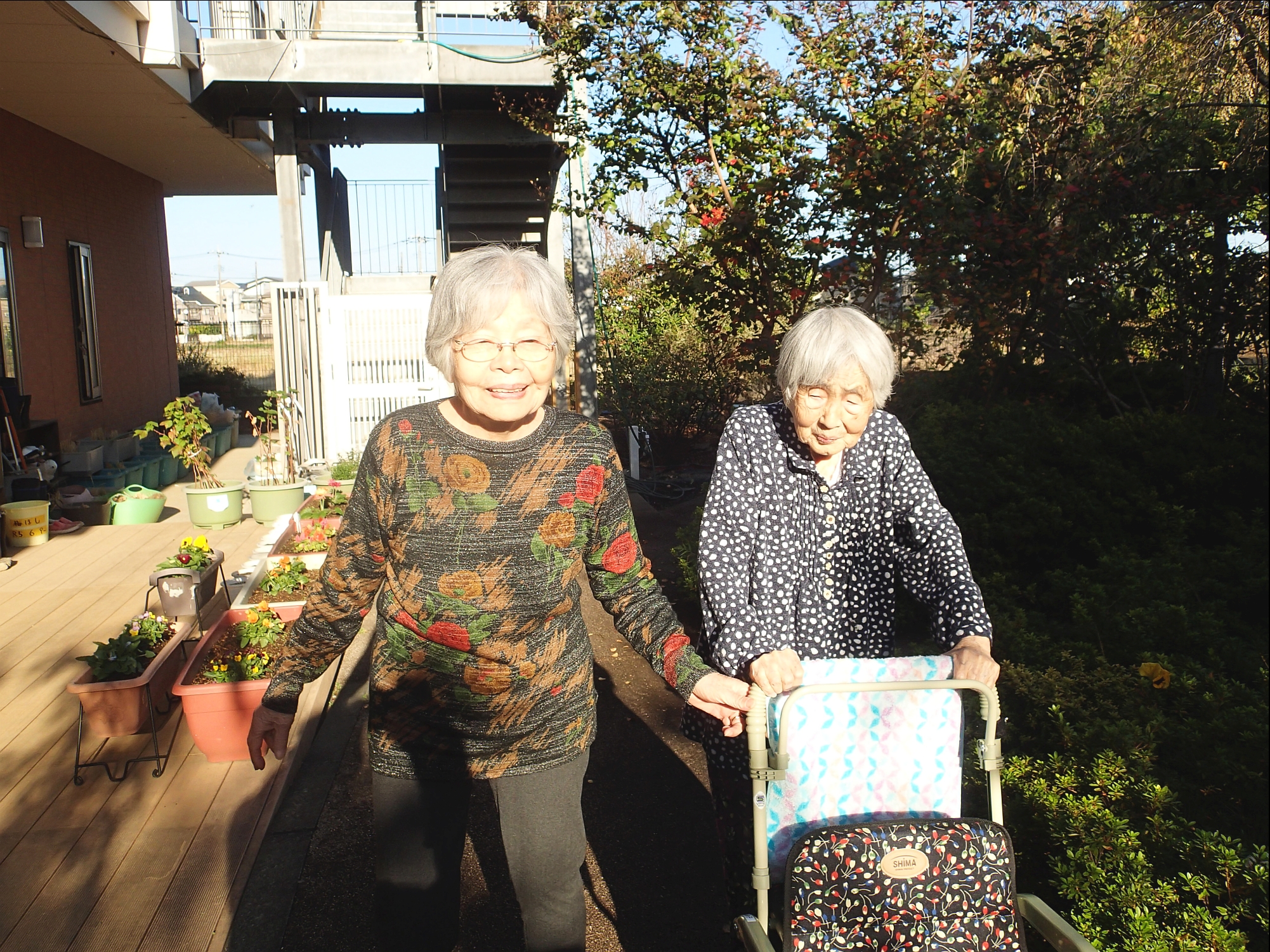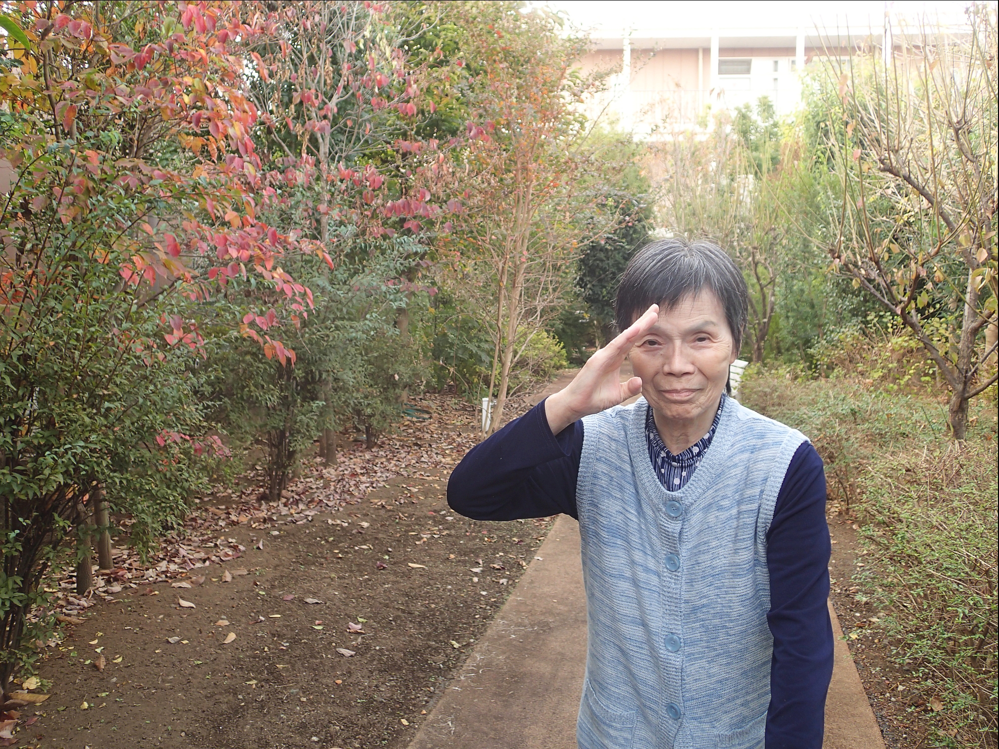 11月に入っても、暖かい日が続いています。そのような中、中庭の散歩を楽しんでいます!