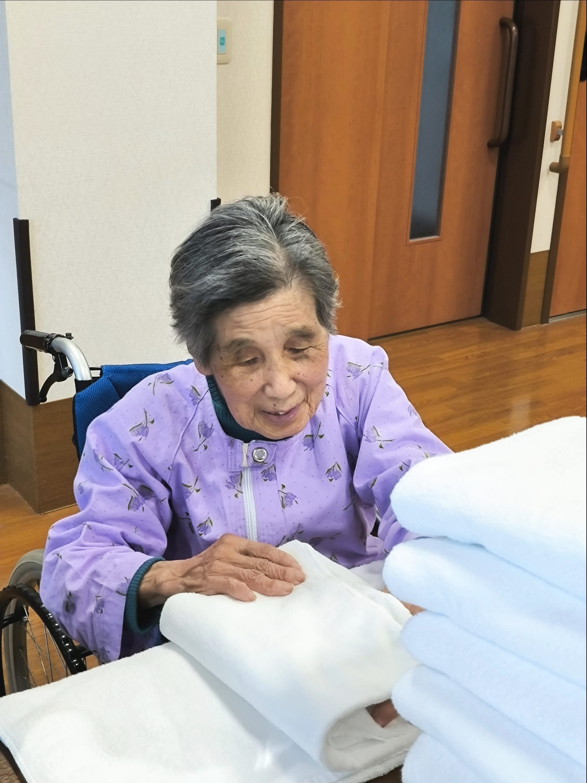建物の中では、皆様、それぞれ、たたみ物をしています!