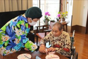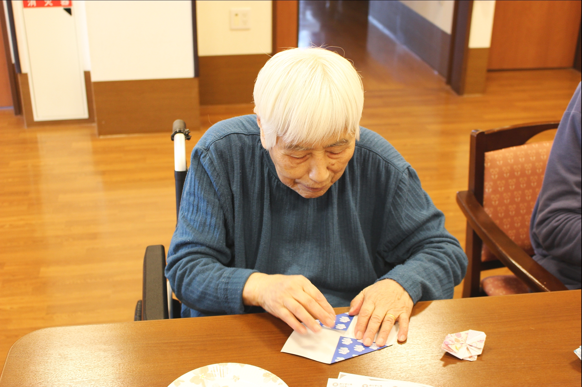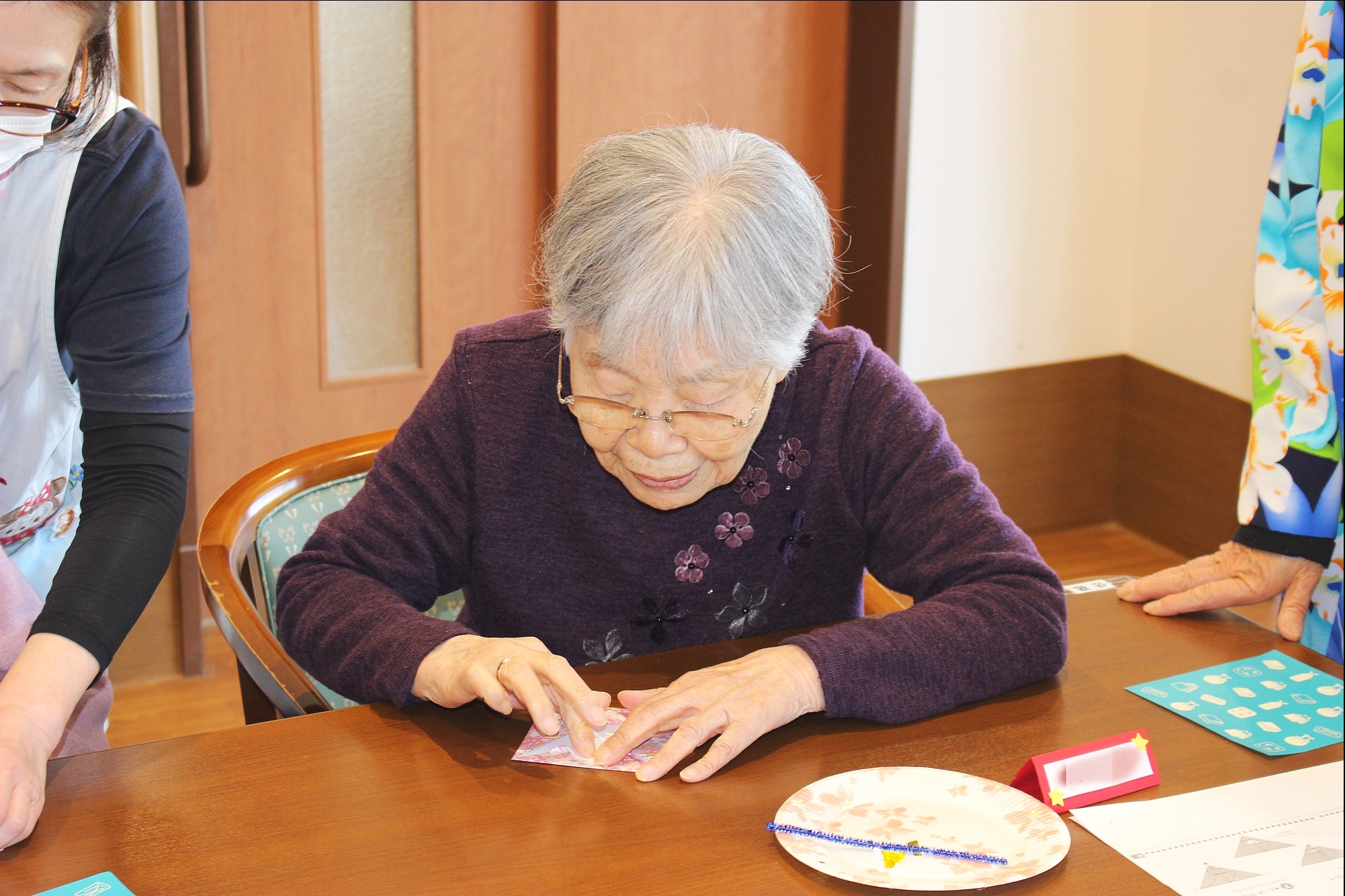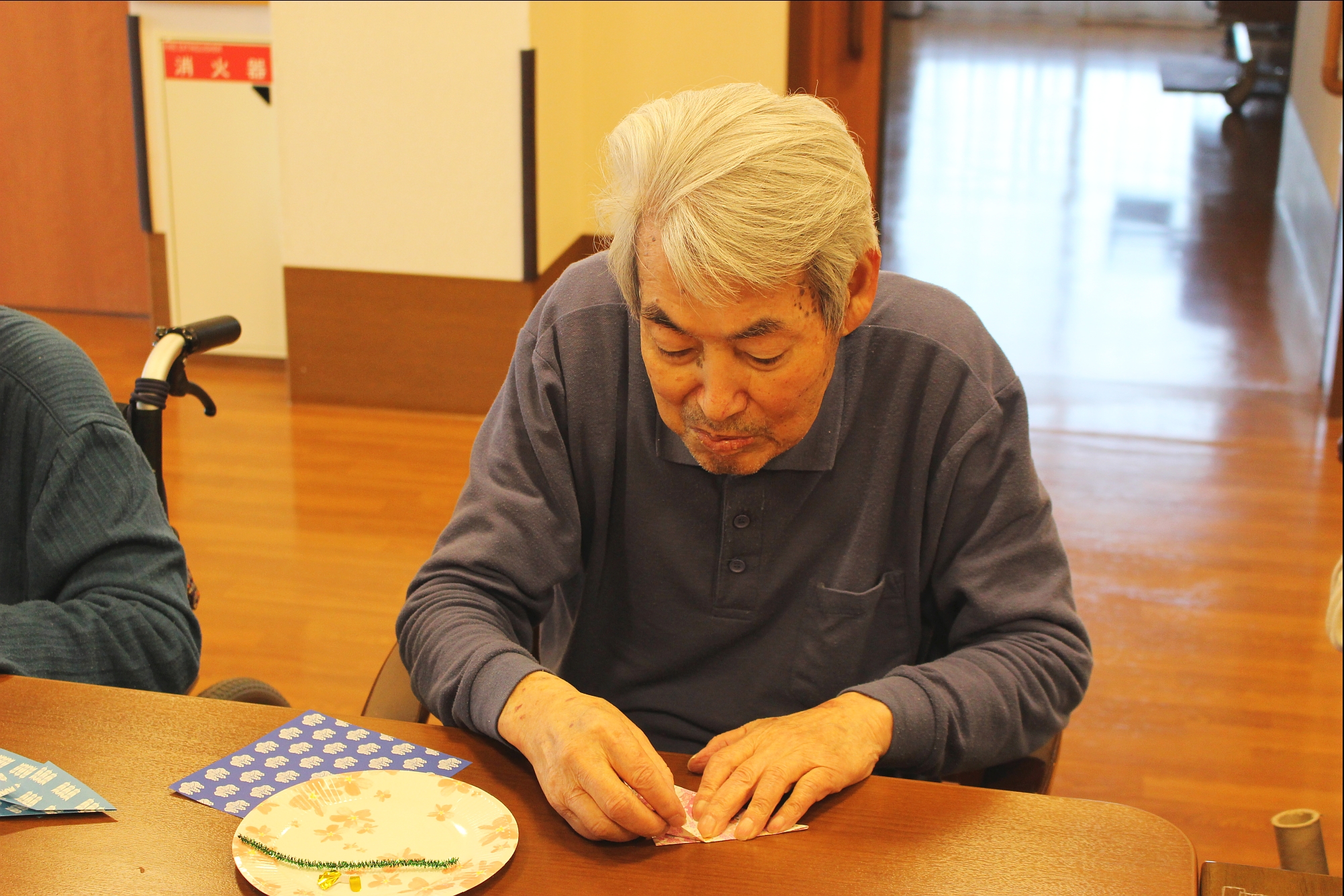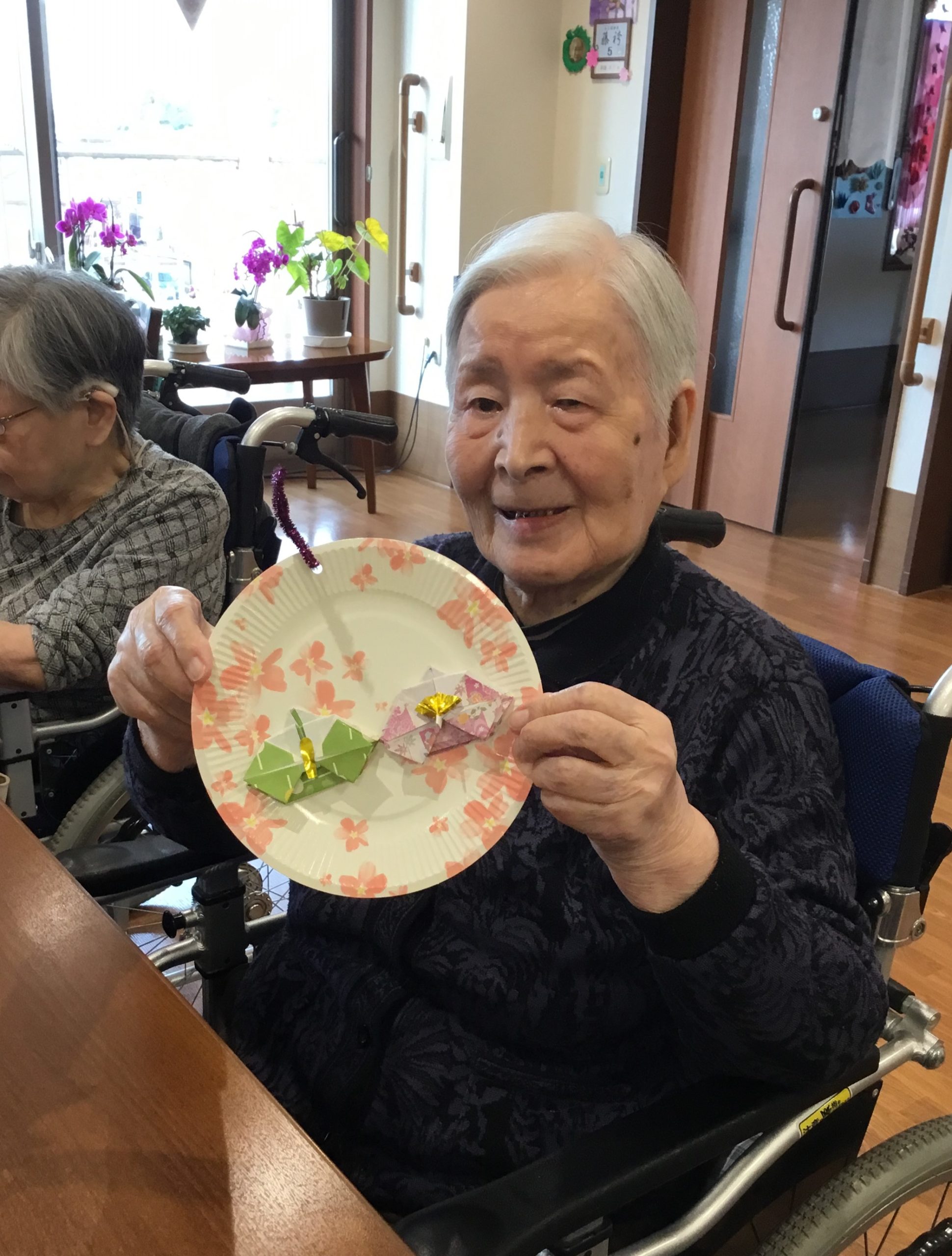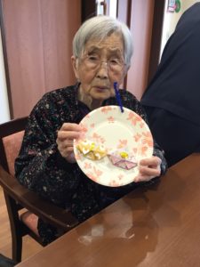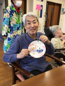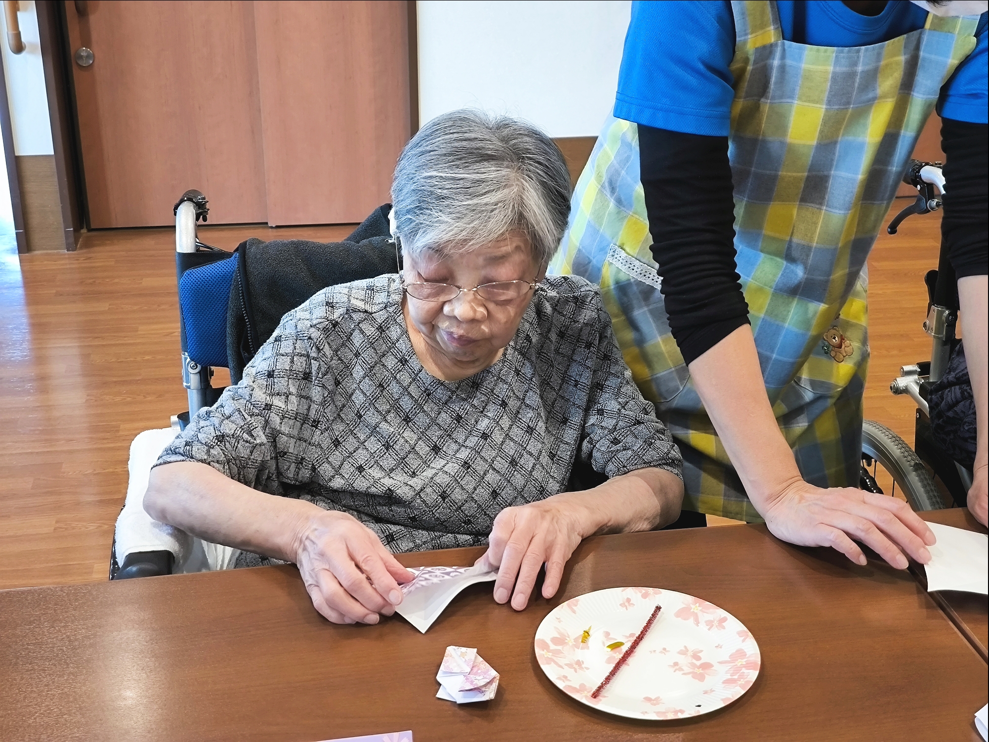 みどりの風鶴ヶ島、十二周年の開設記念レクリエーション!続いては、本館3階 藤袴・早蕨ユニット。おひな様の壁掛け飾りと、ケーキ作りを楽しみました!