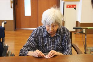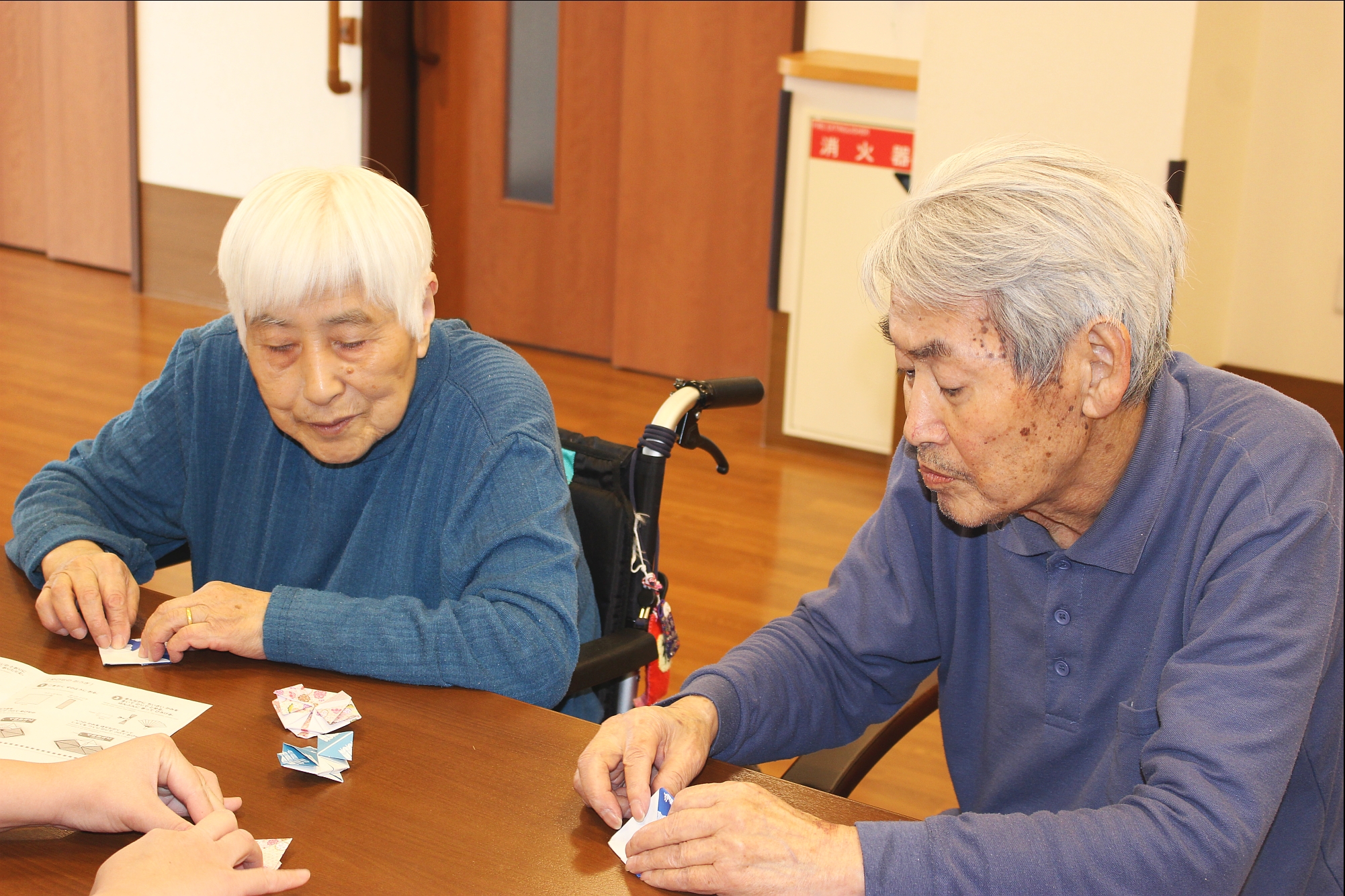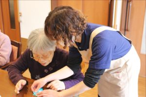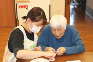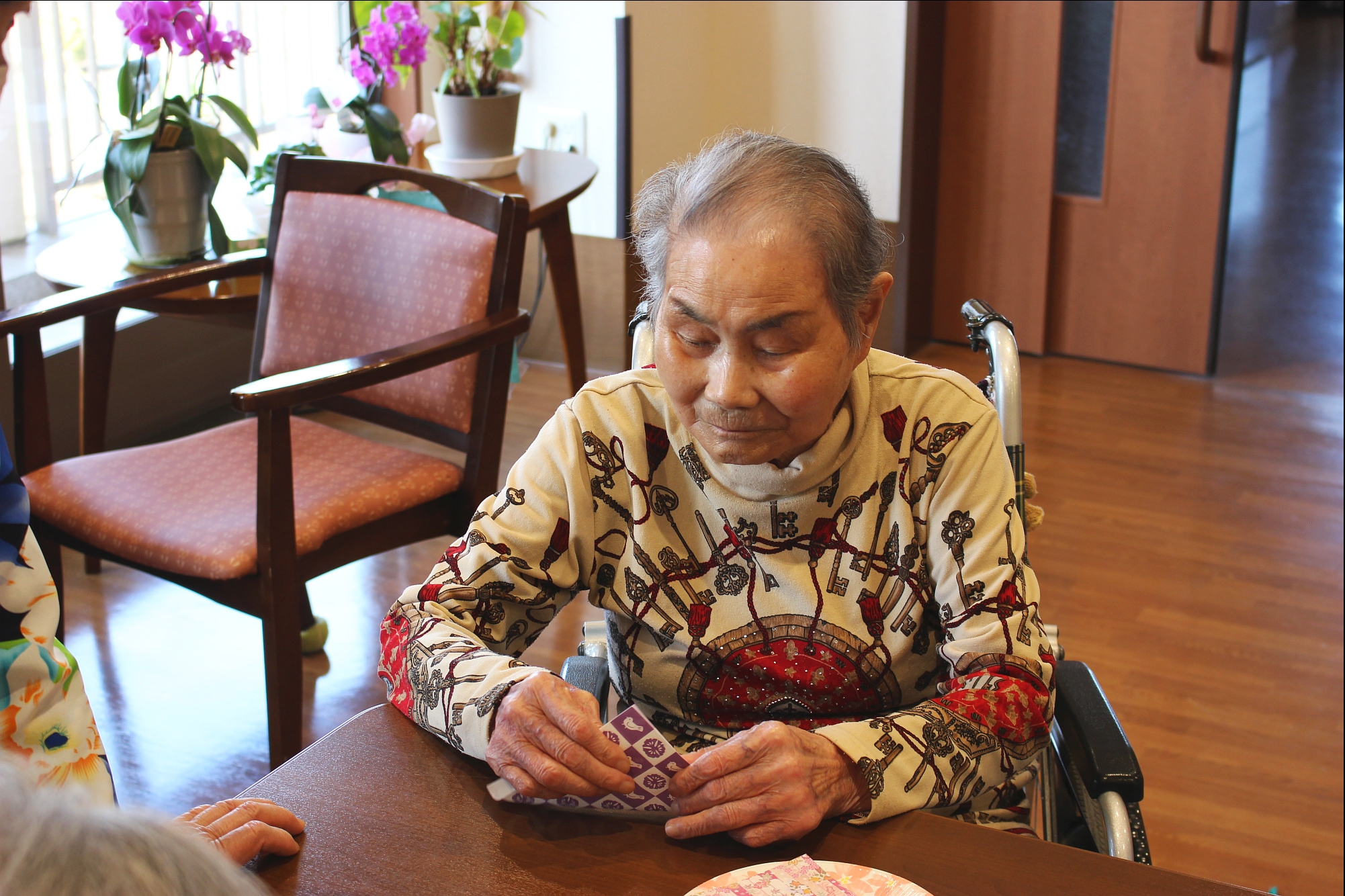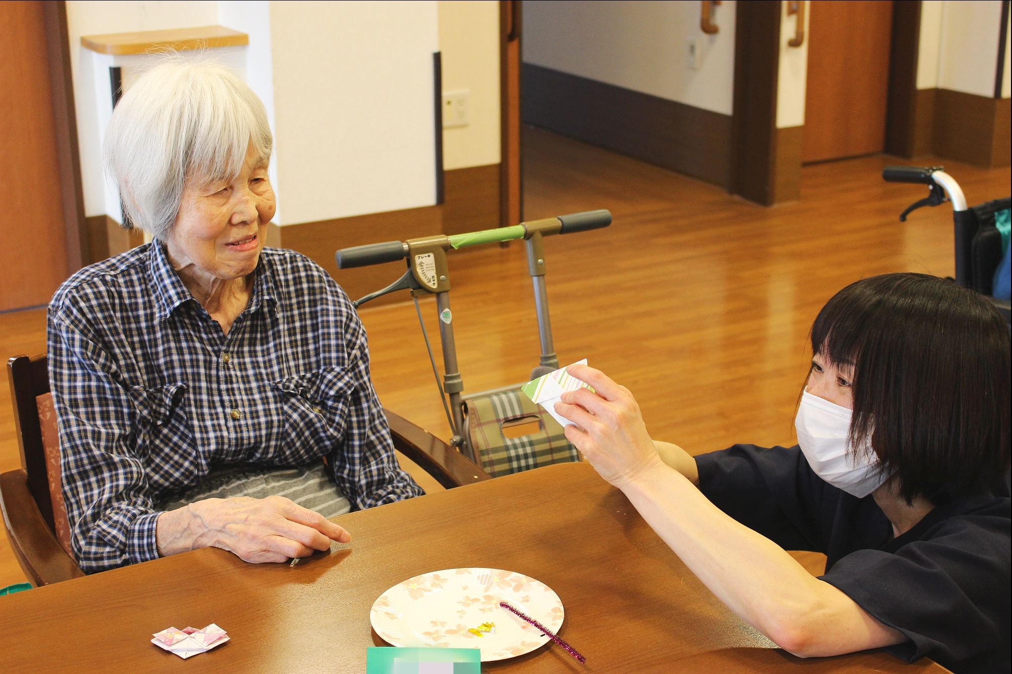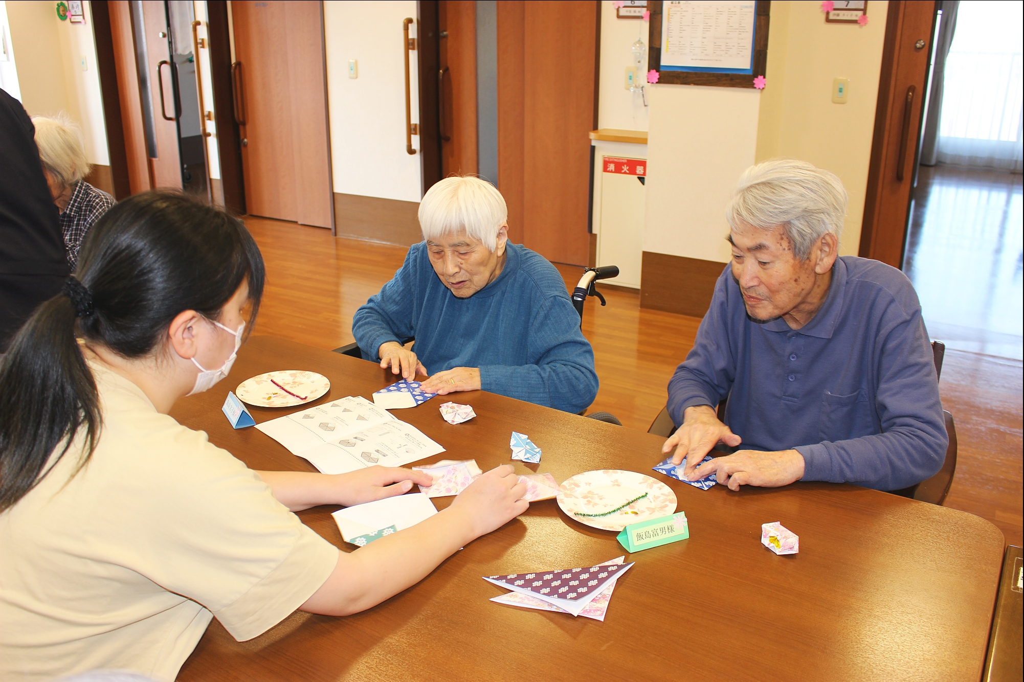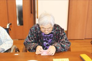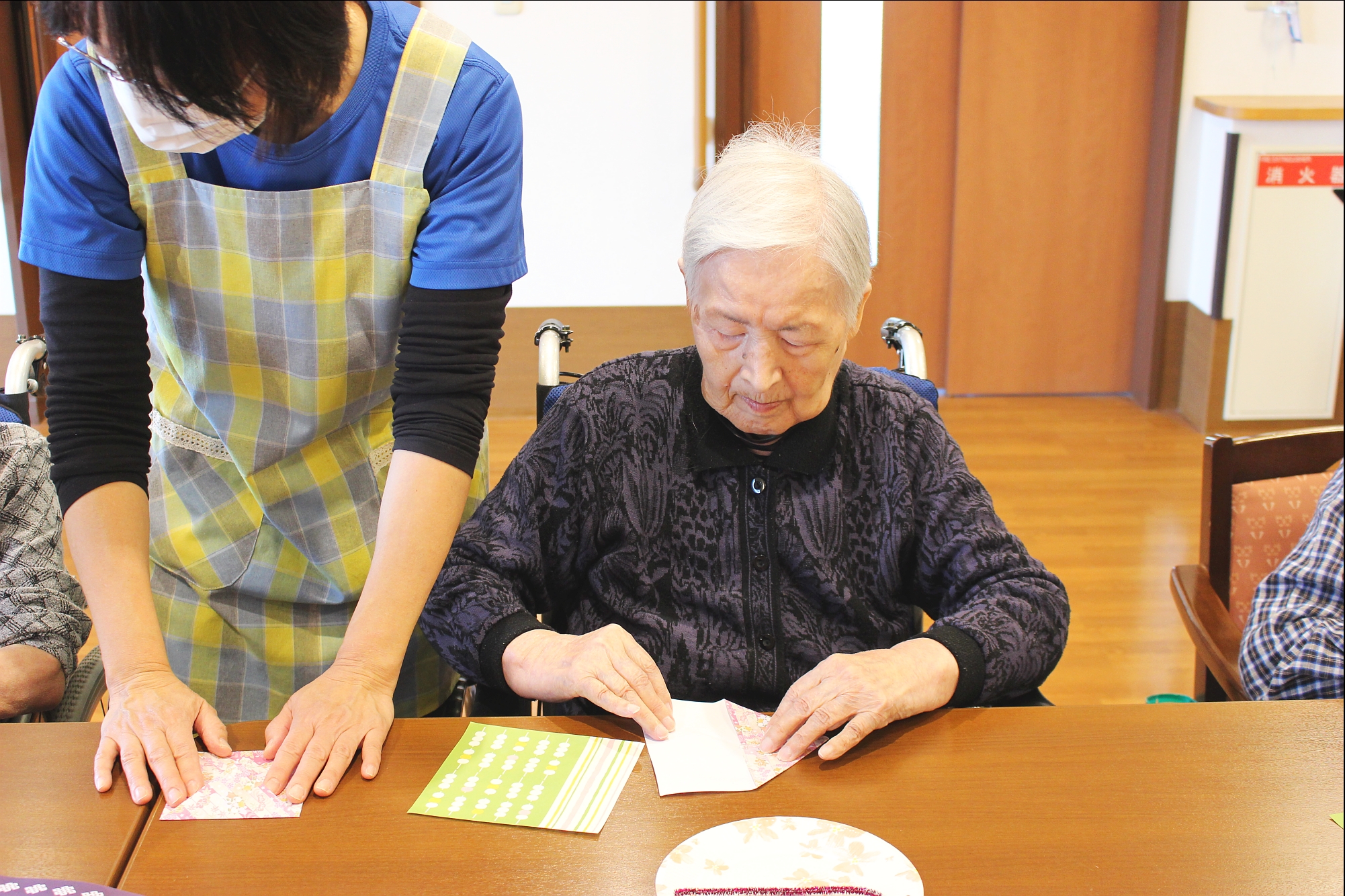 みどりの風鶴ヶ島、十二周年の開設記念レクリエーション!続いては、本館3階 藤袴・早蕨ユニット。おひな様の壁掛け飾りと、ケーキ作りを楽しみました!