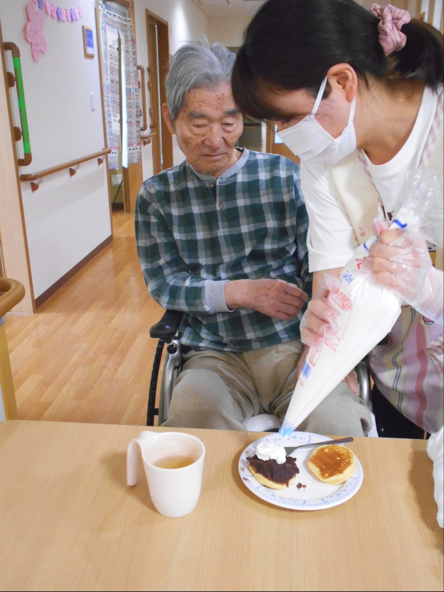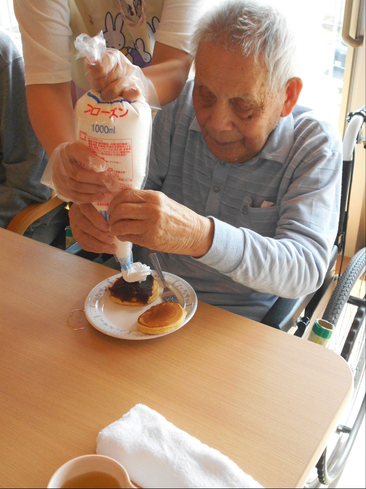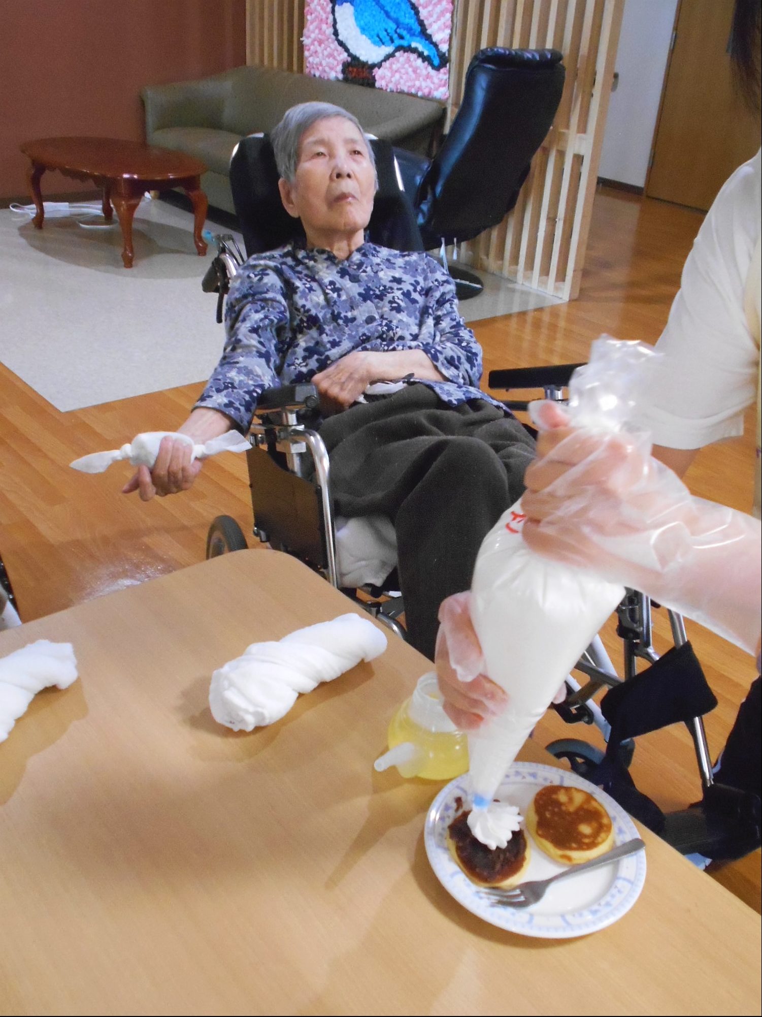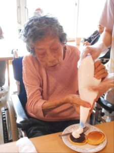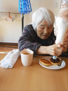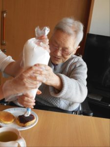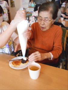 しゃぼん玉の後は、ホットケーキ!花と小鳥3階 あやめ・おおるりユニットでは、デコレーションして