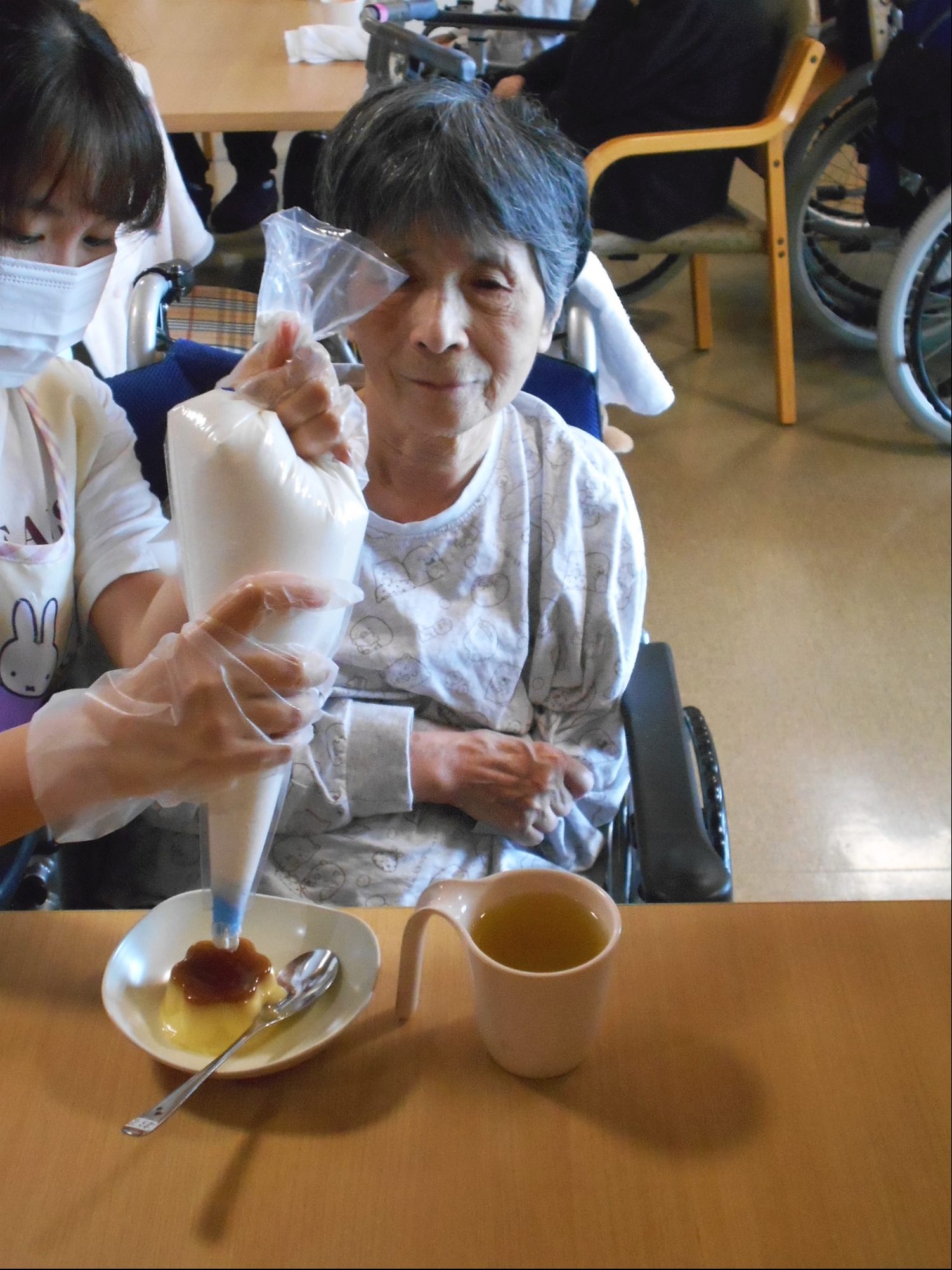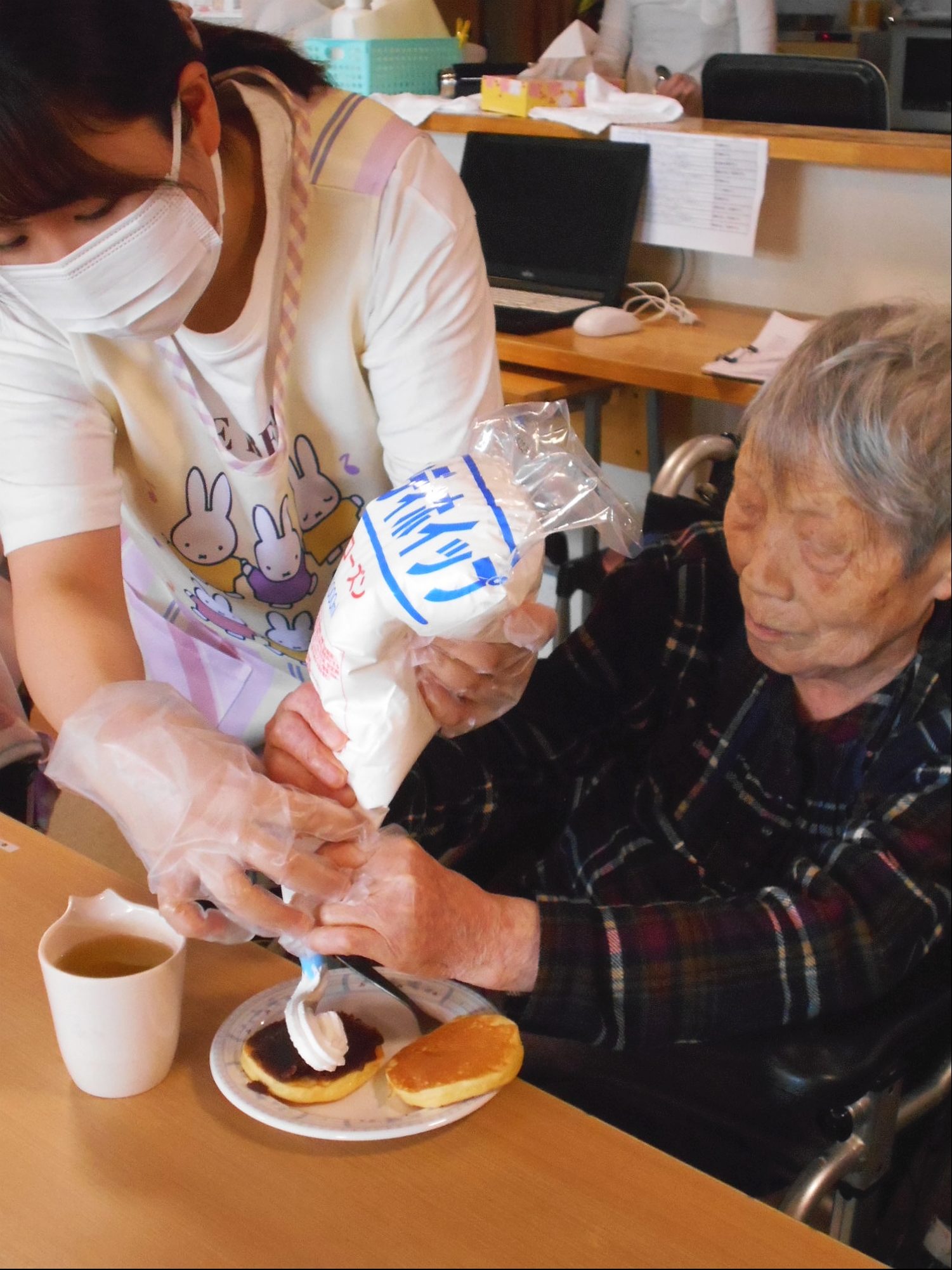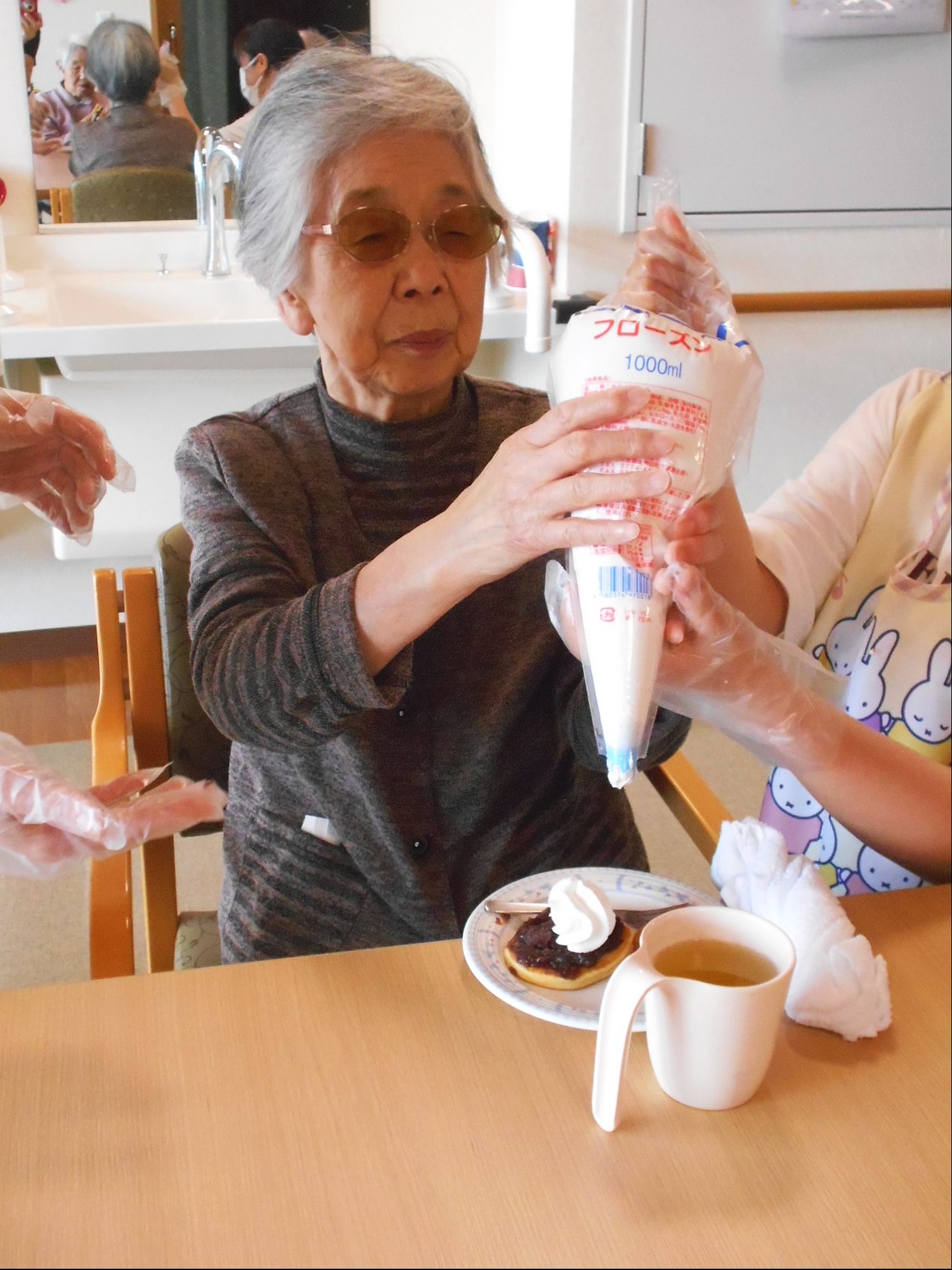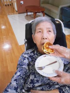 しゃぼん玉の後は、ホットケーキ!花と小鳥3階 あやめ・おおるりユニットでは、デコレーションして