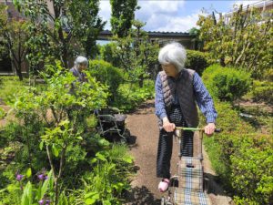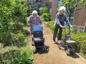 新緑がきれいな季節、今日も、中庭の散歩に出かけました!