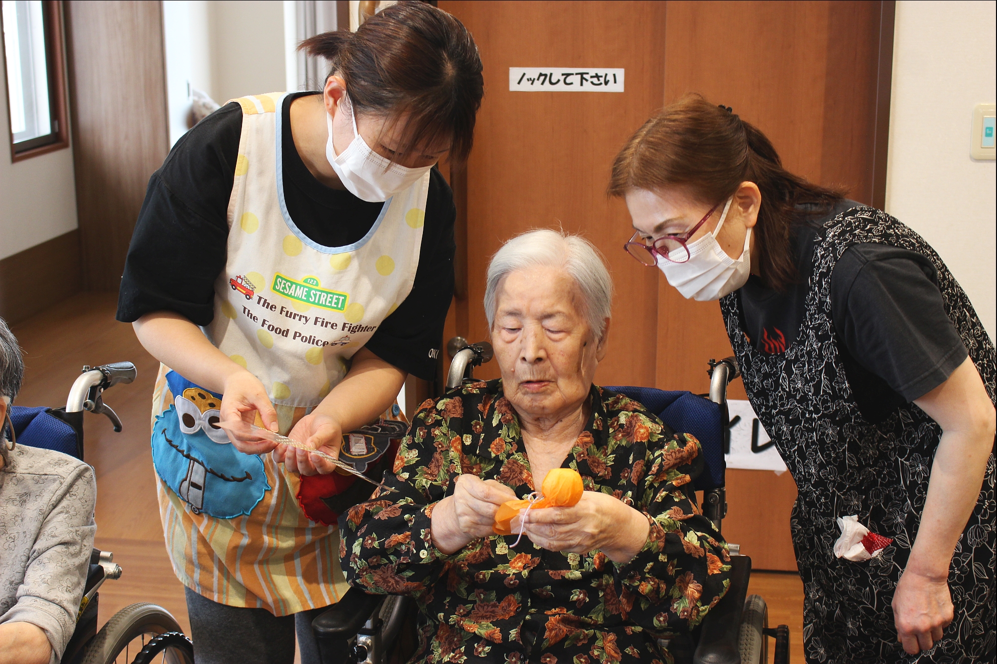 6月と言えば、「梅雨」。みどりの風鶴ヶ島では、てるてる坊主を、作りました!場所は本館3階 藤袴・早蕨ユニット!