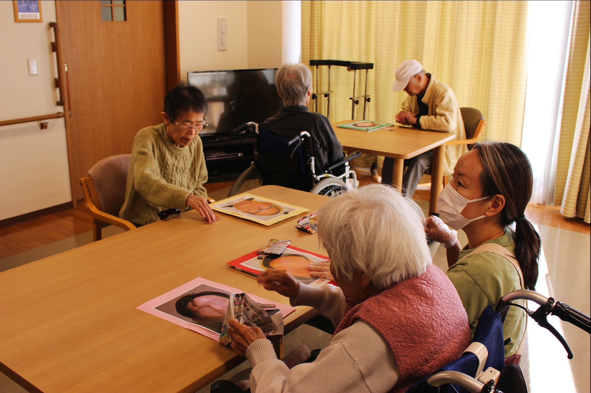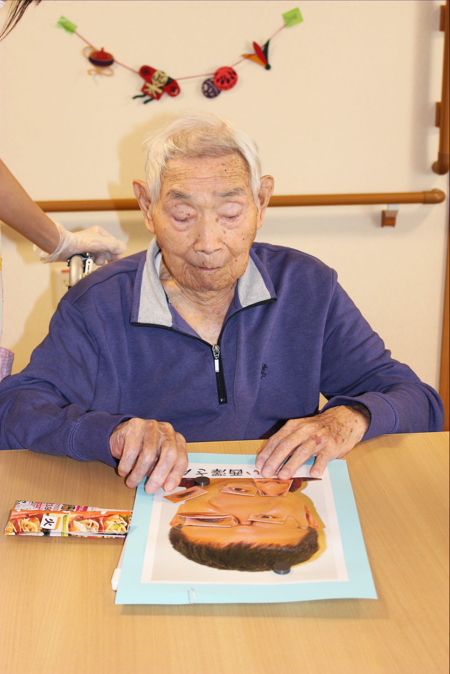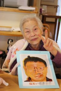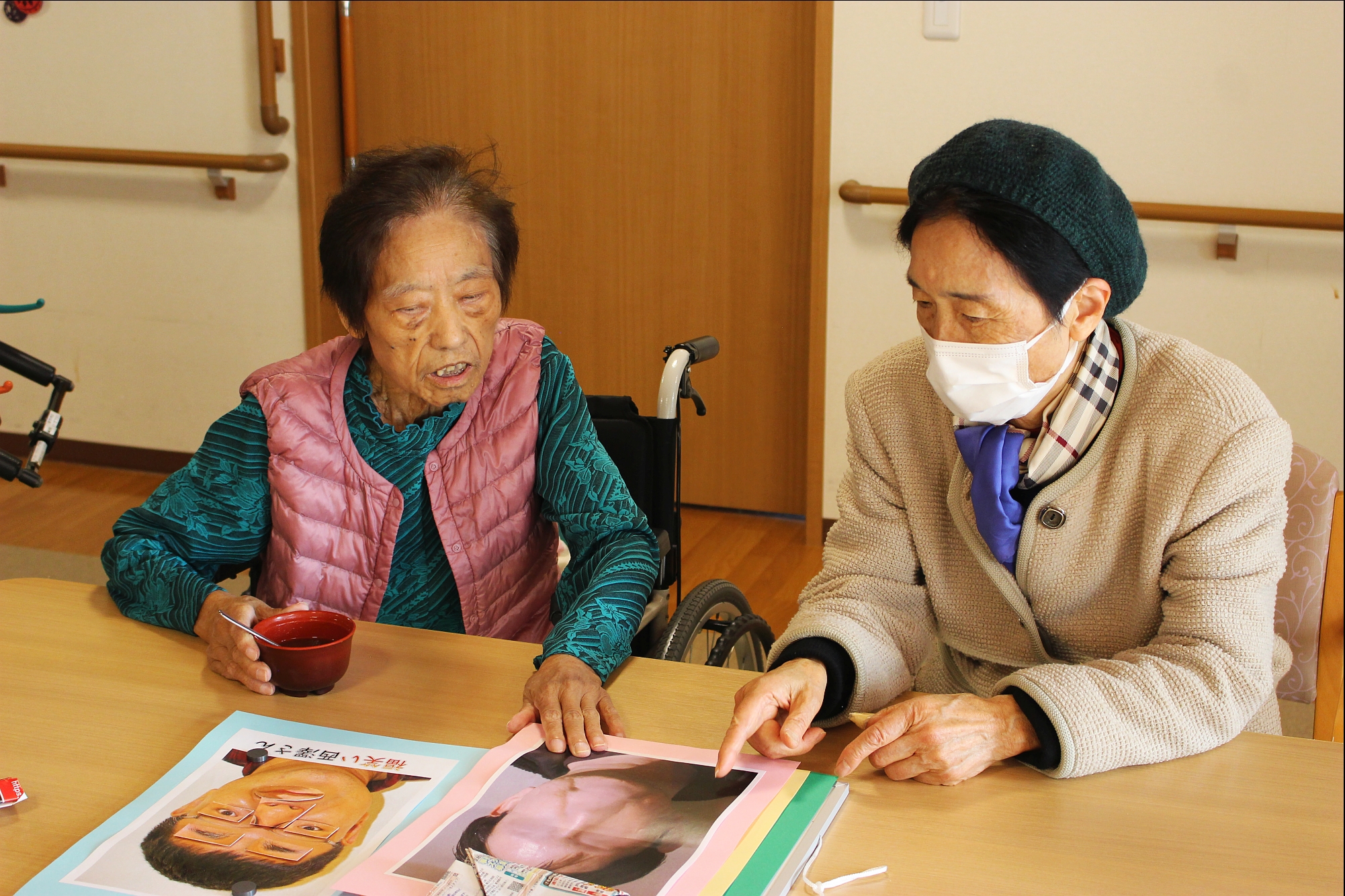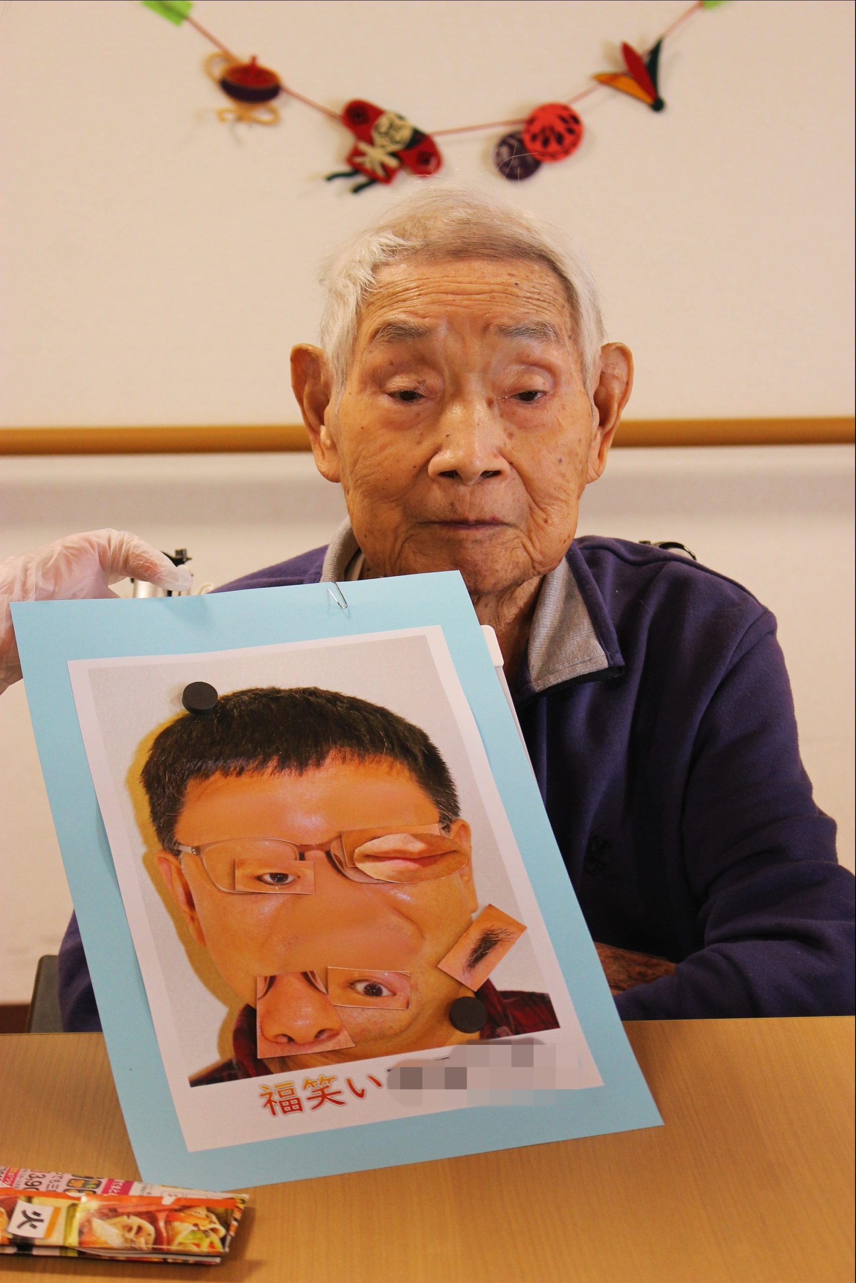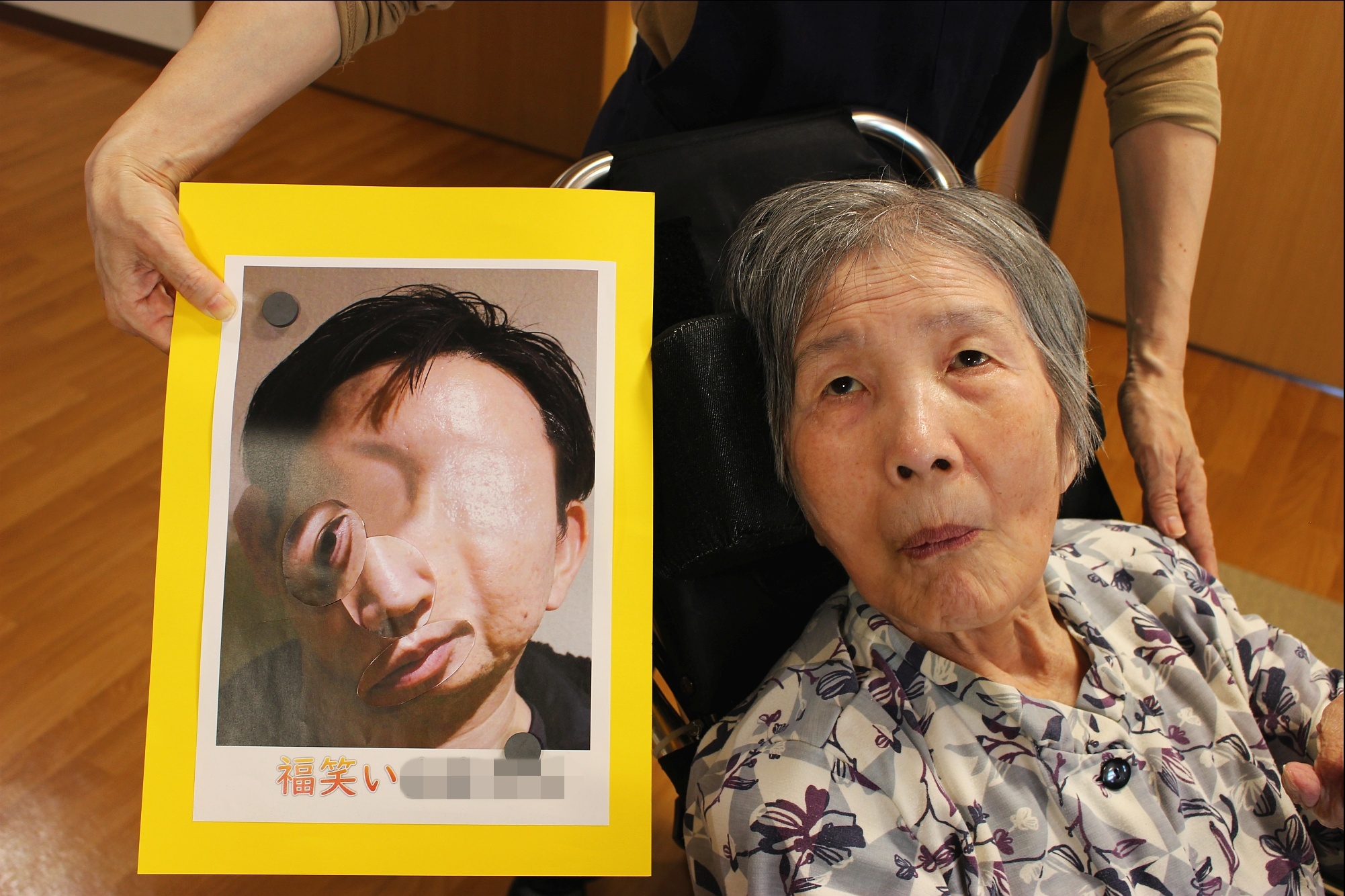 お正月遊びには様々ありますが、花と小鳥3階 あやめ・おおるりユニットでは、福笑いを楽しみました!