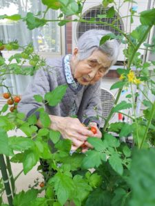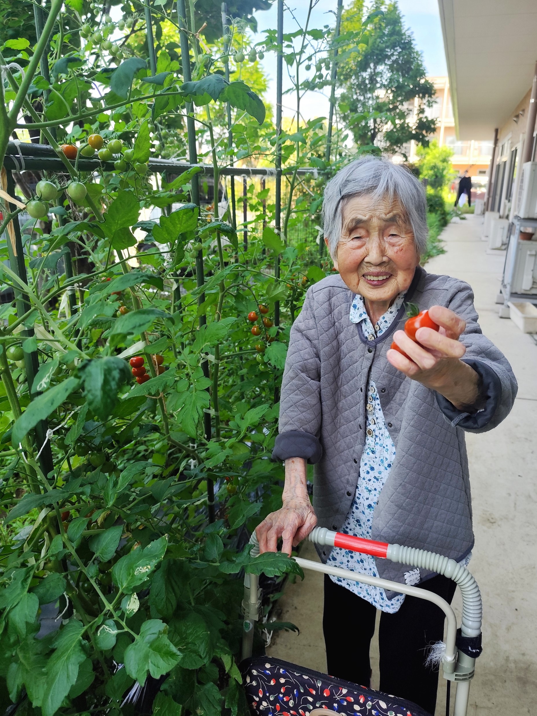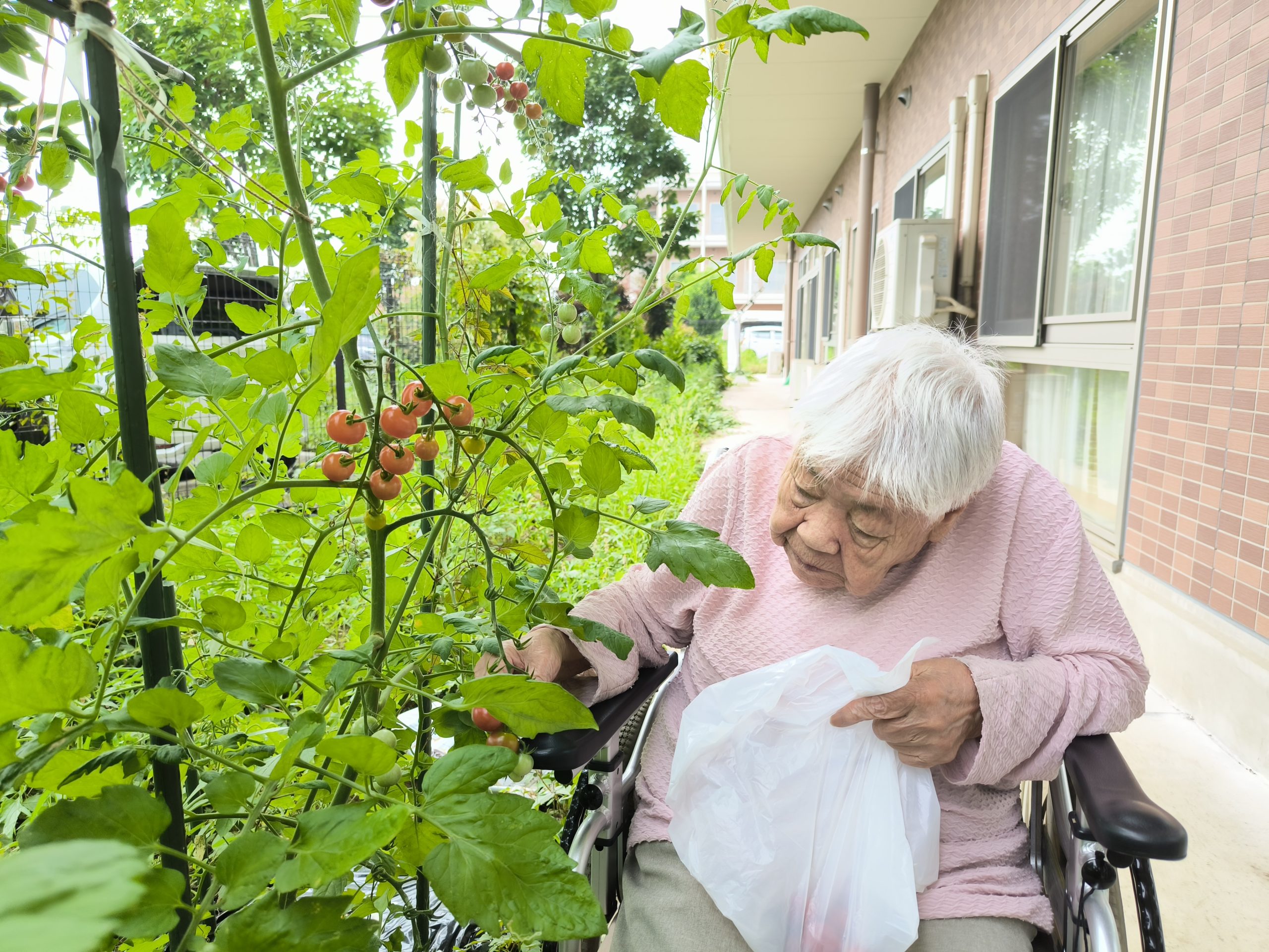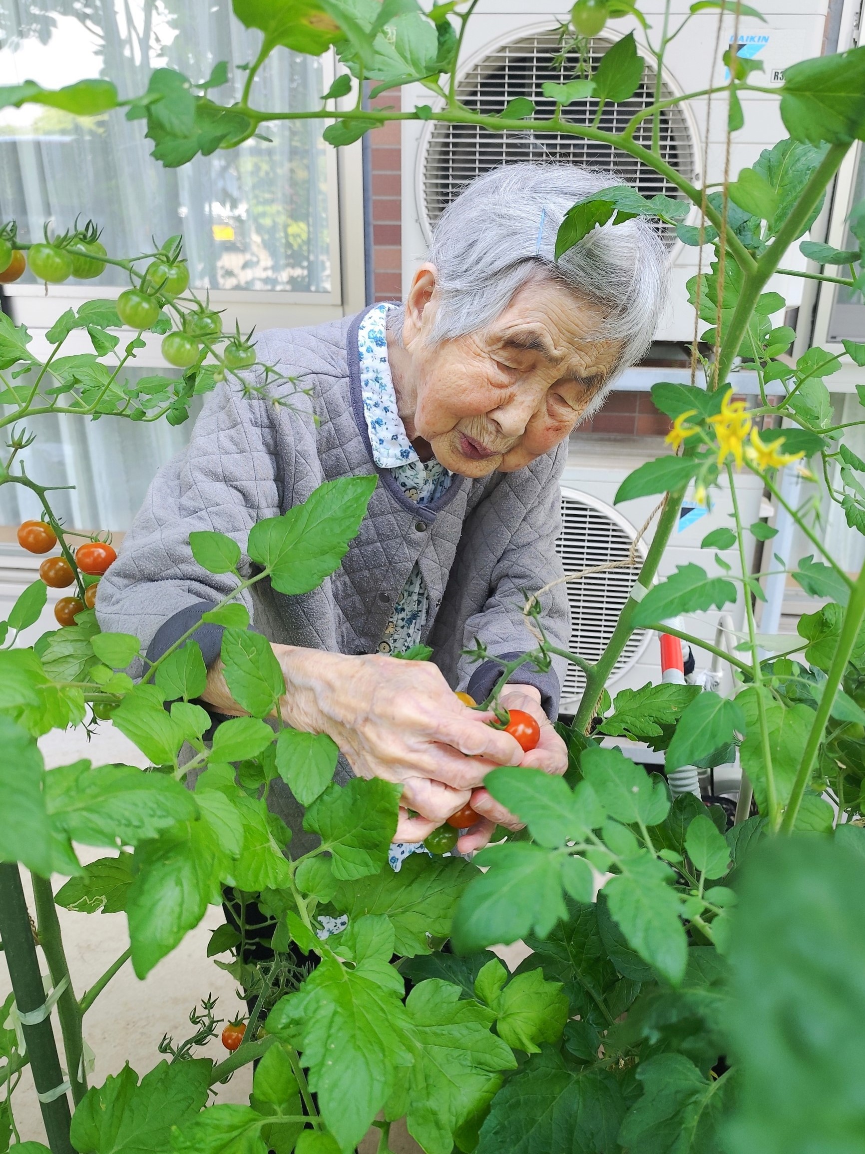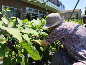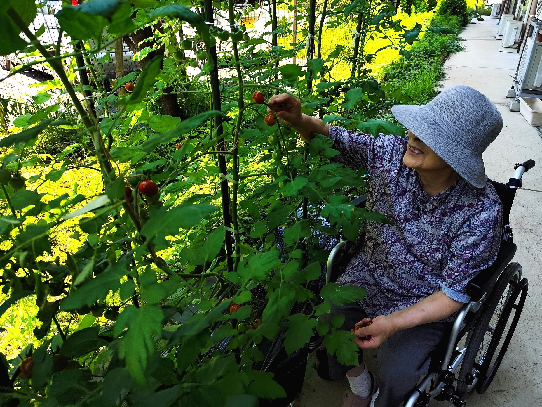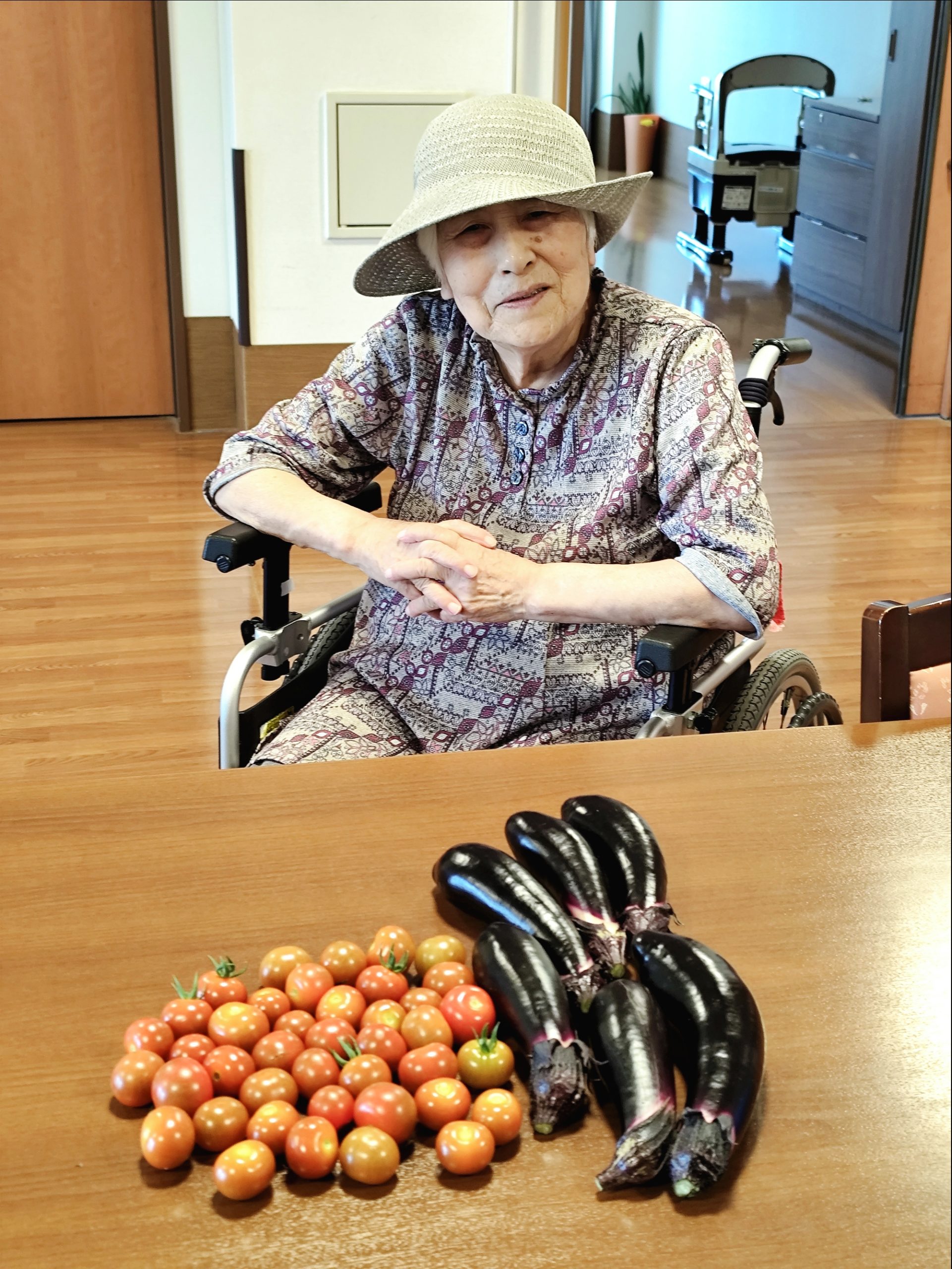 みどりの風鶴ヶ島の野菜畑、暑い中でも、トマトとナスが大収穫!