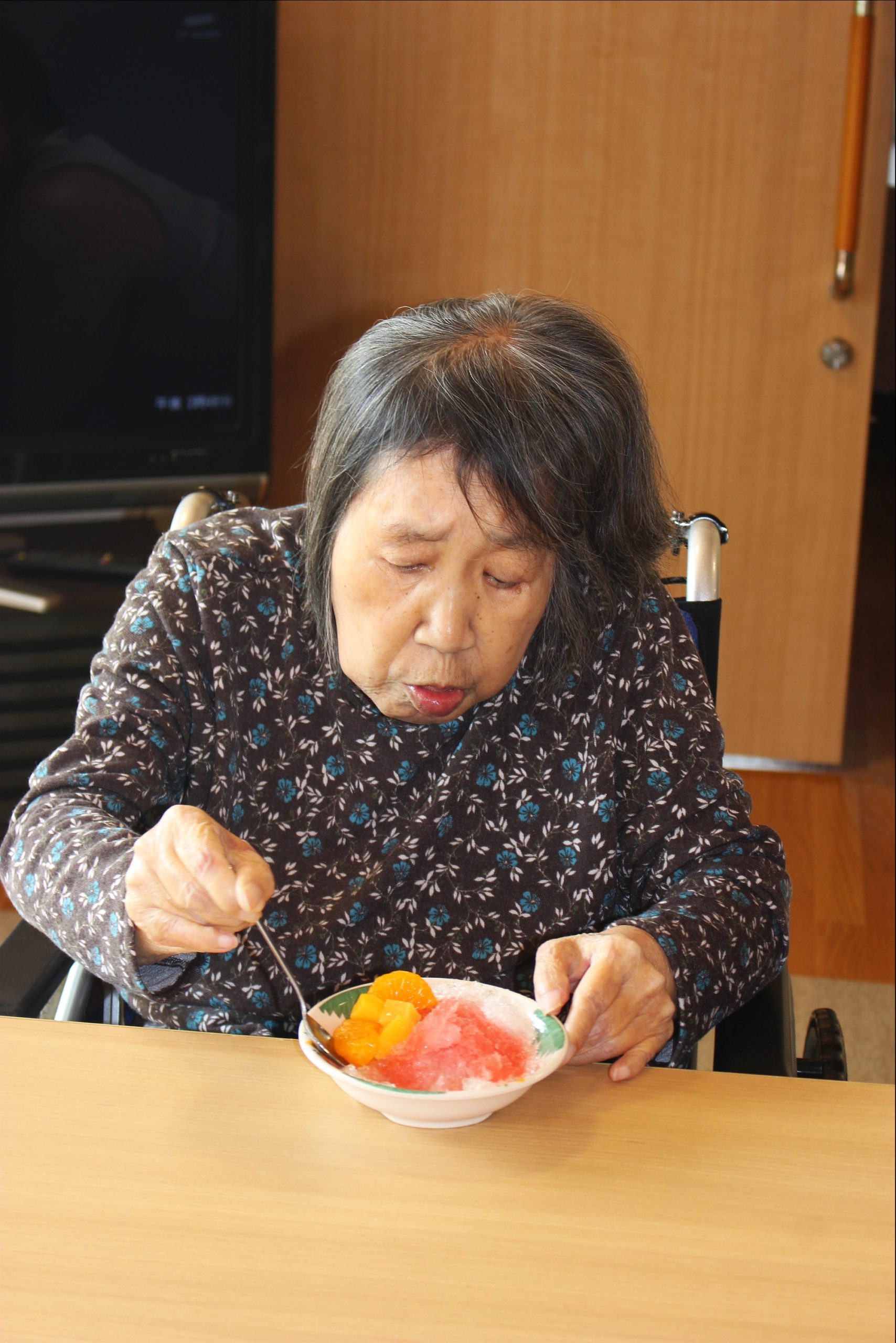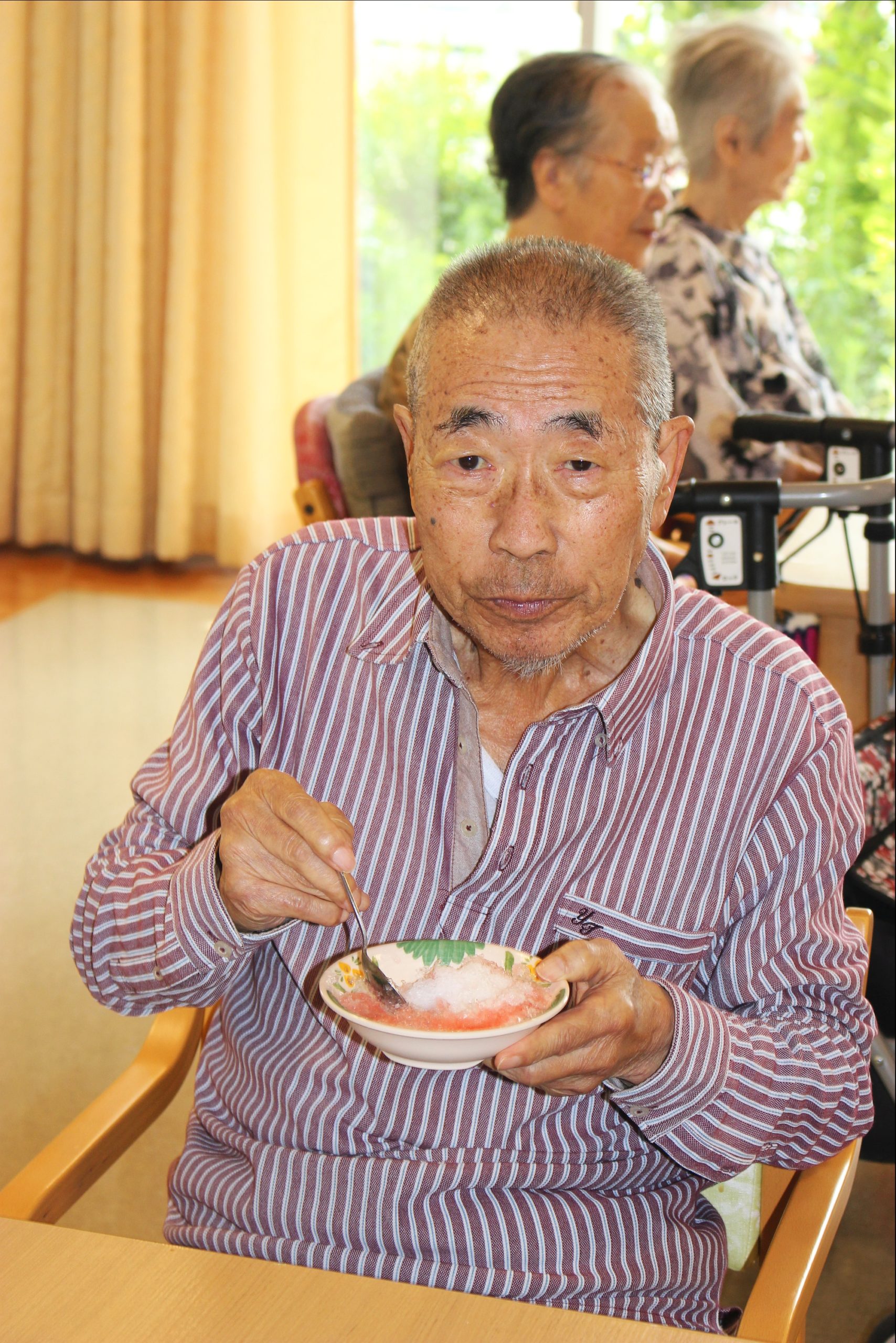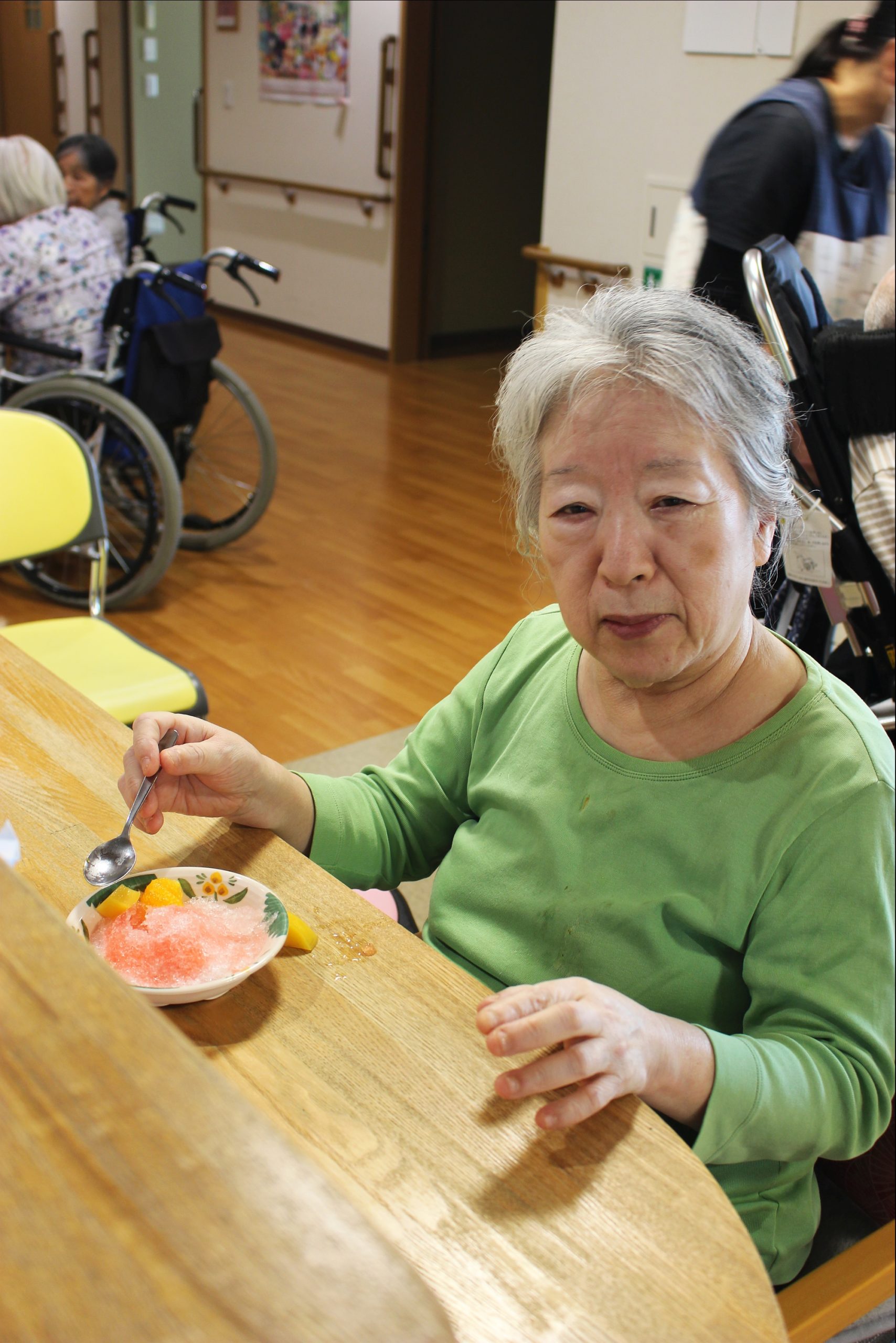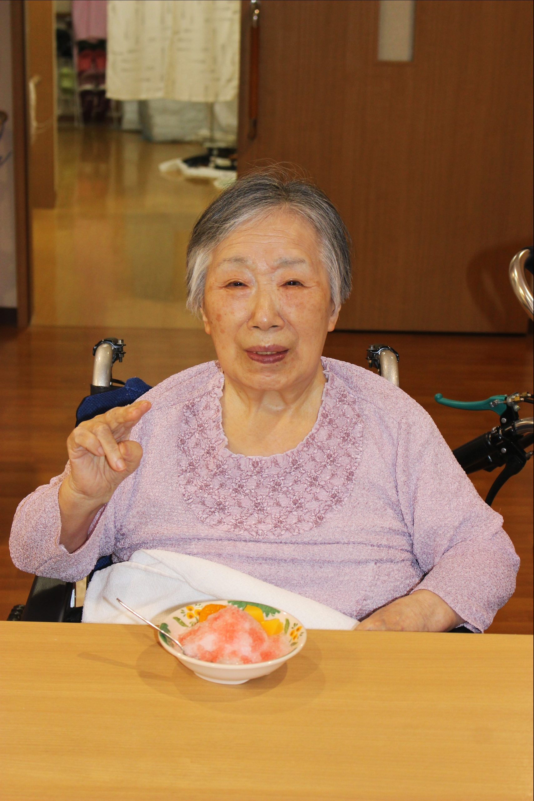 暑いー夏、食べたいのが、かき氷!花と小鳥1階、さくら・うぐいすユニットは、手作りのかき氷を、食べました!