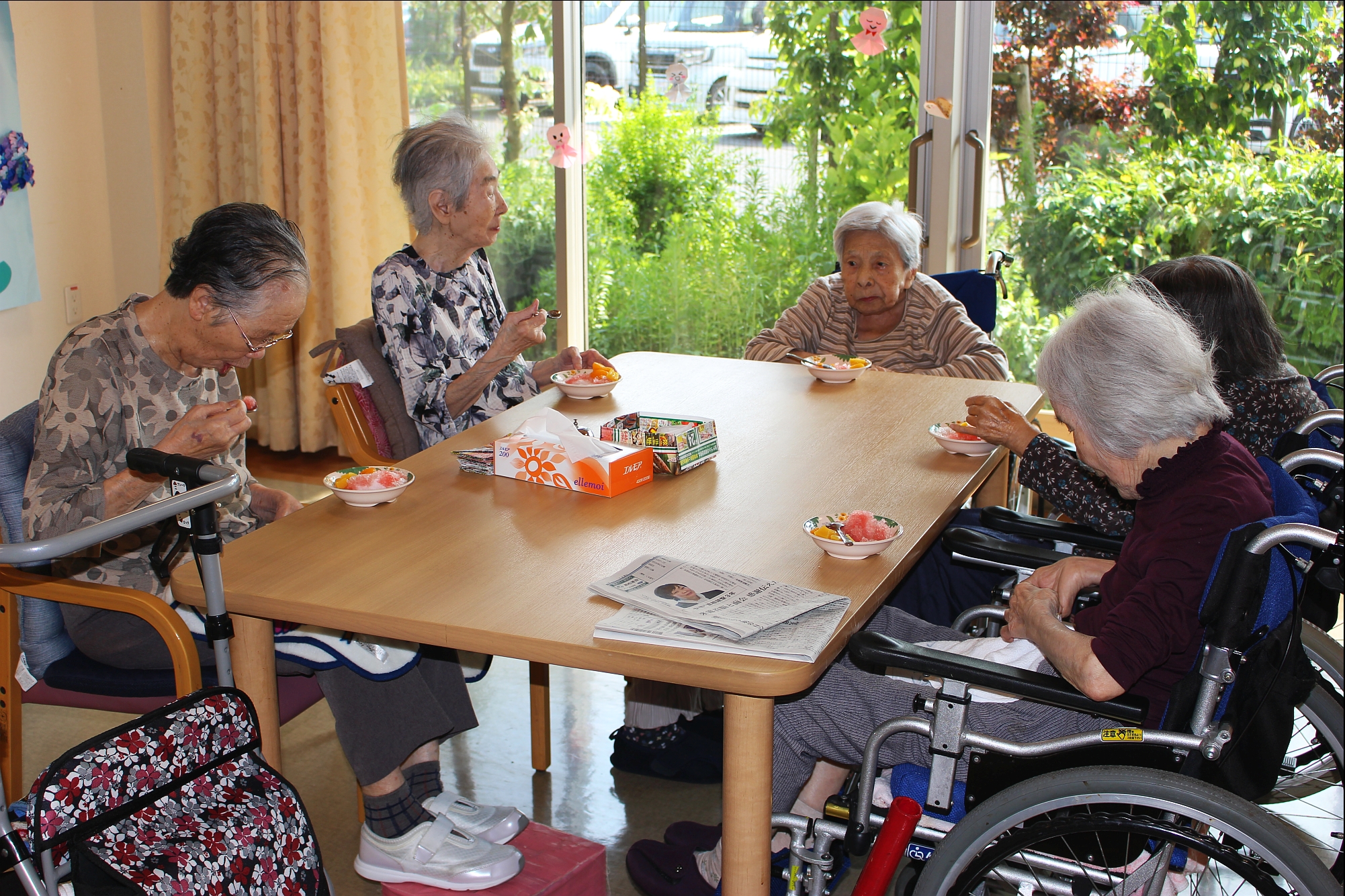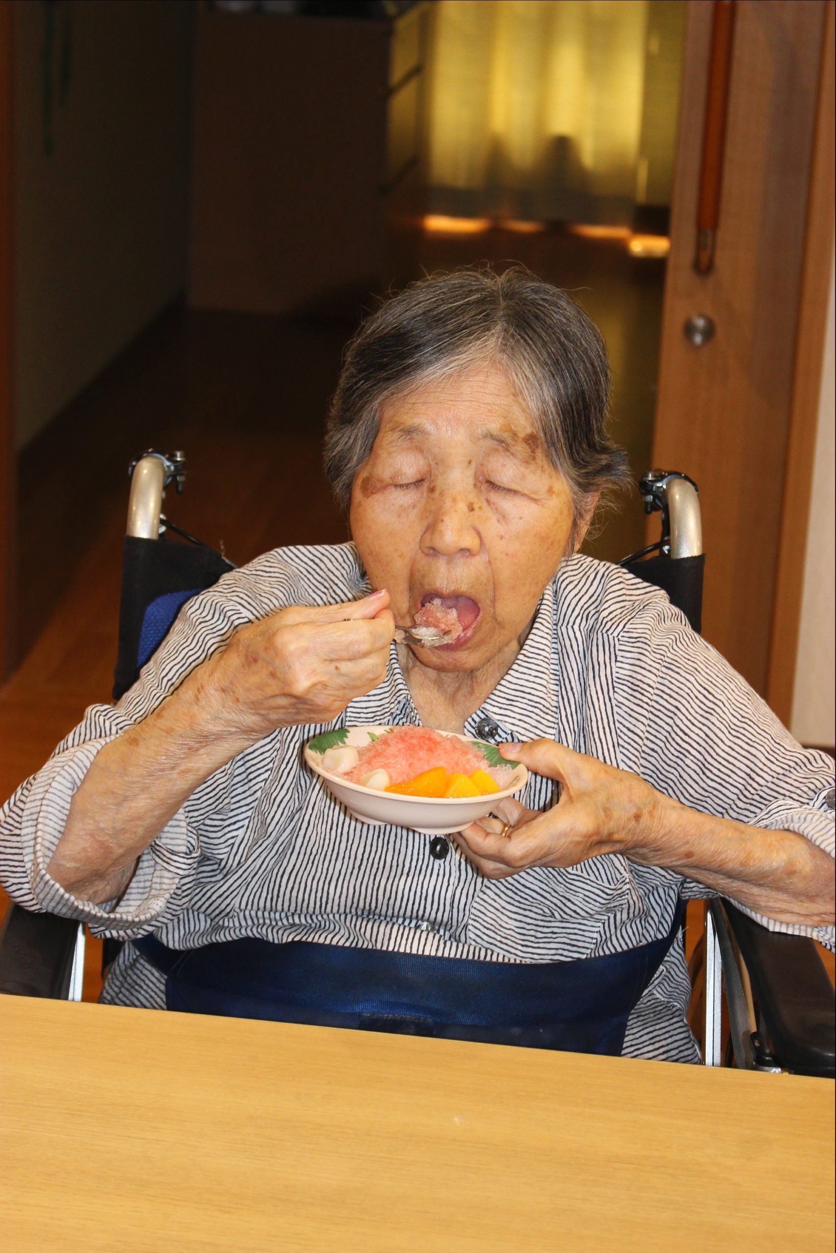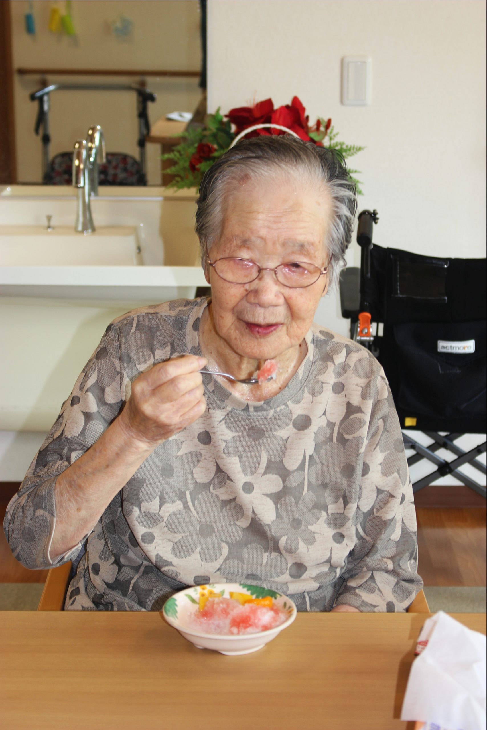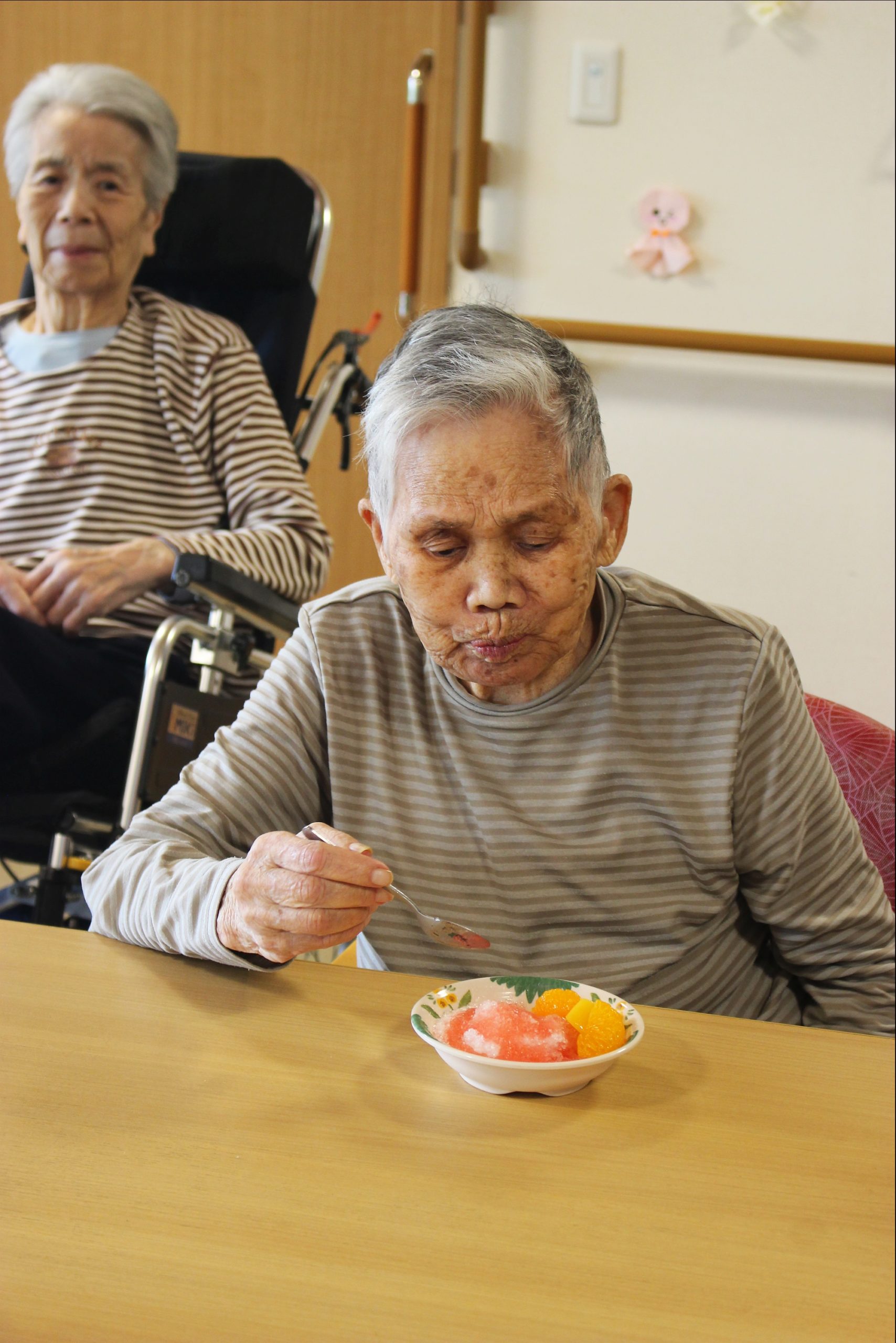 暑いー夏、食べたいのが、かき氷!花と小鳥1階、さくら・うぐいすユニットは、手作りのかき氷を、食べました!