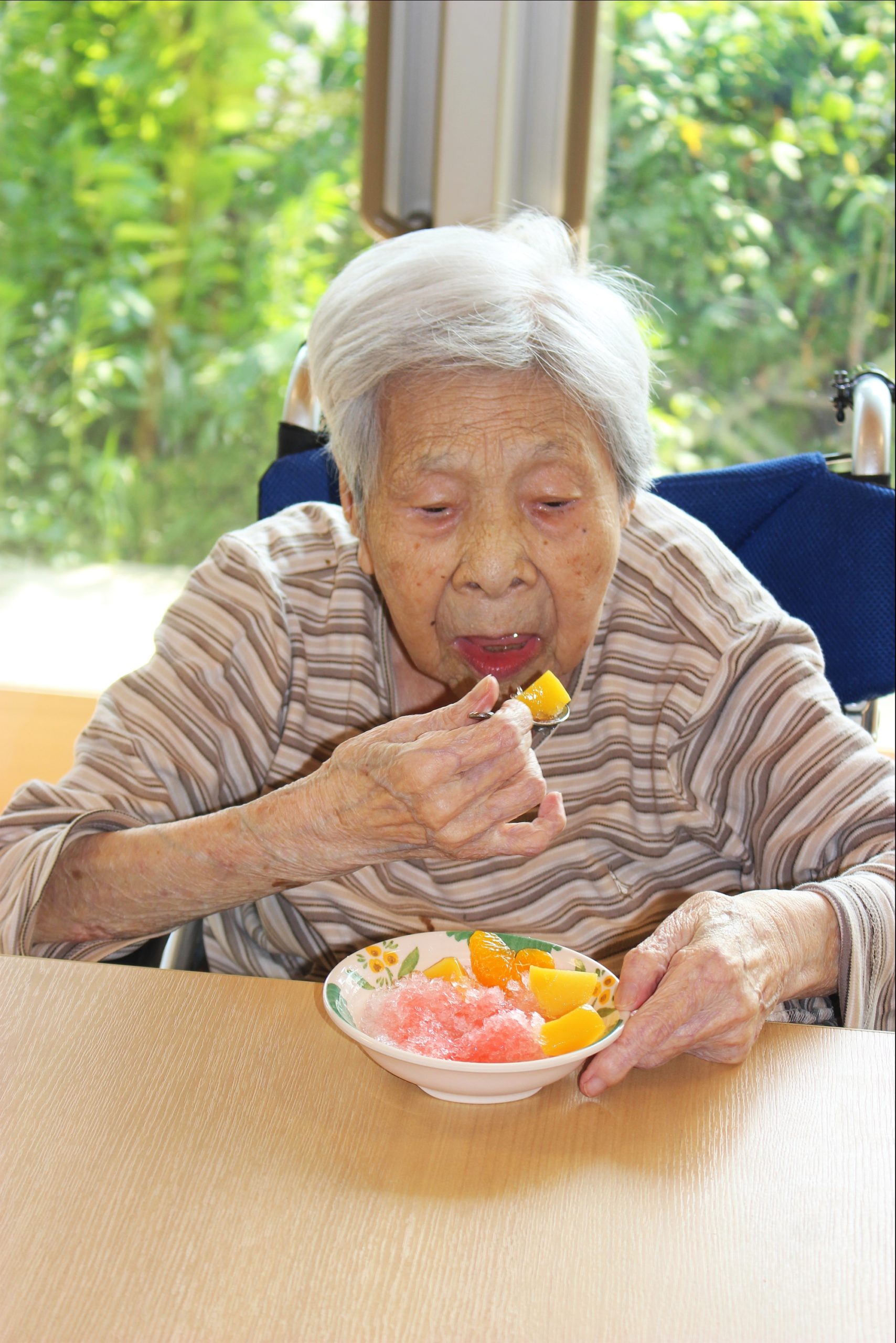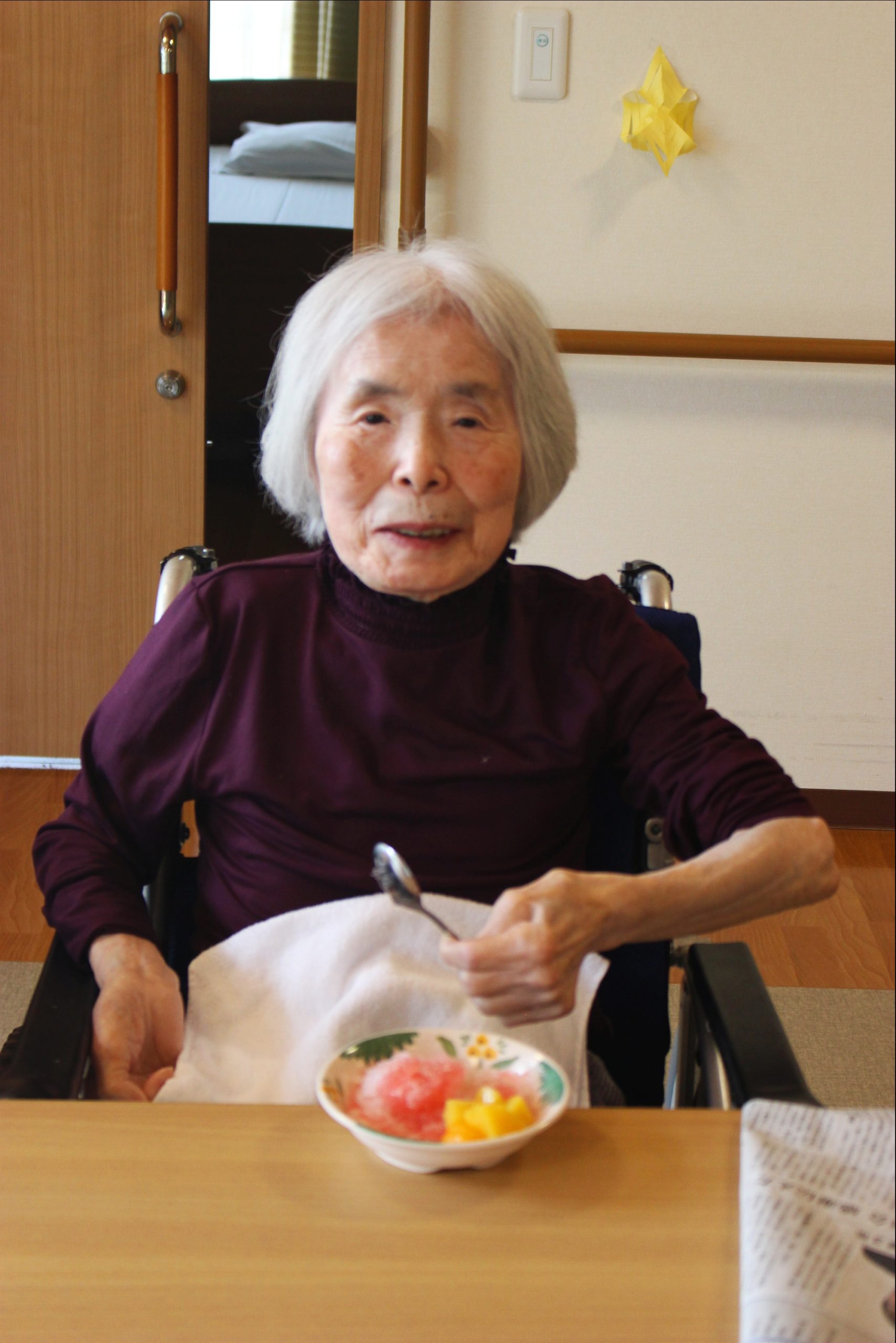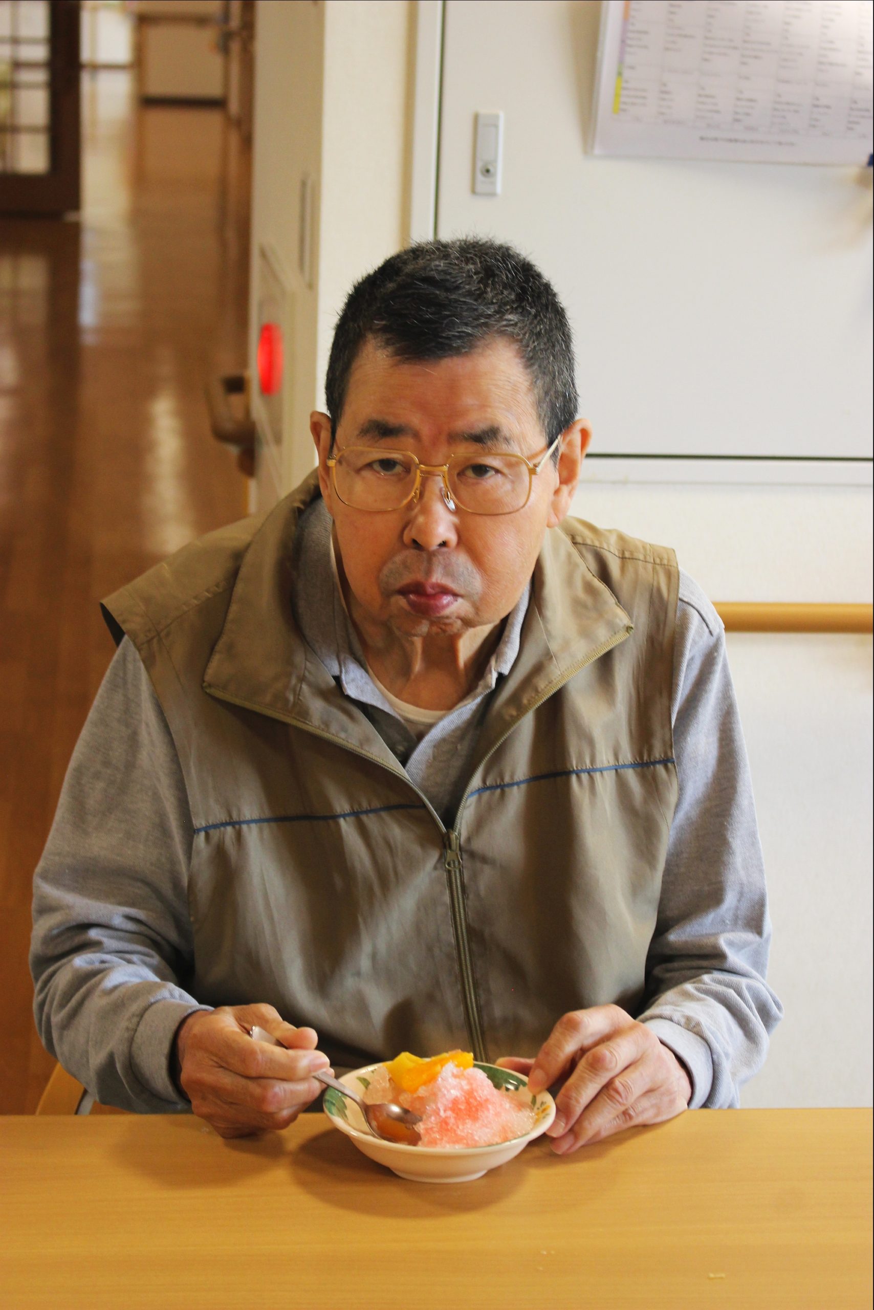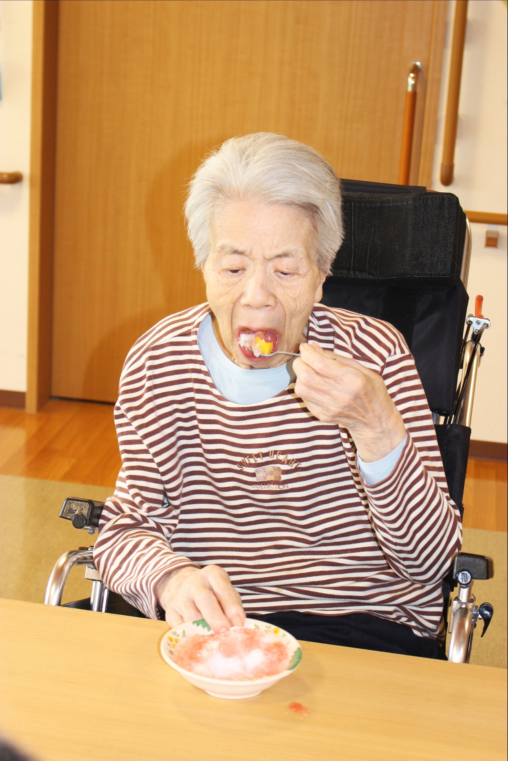 暑いー夏、食べたいのが、かき氷!花と小鳥1階、さくら・うぐいすユニットは、手作りのかき氷を、食べました!