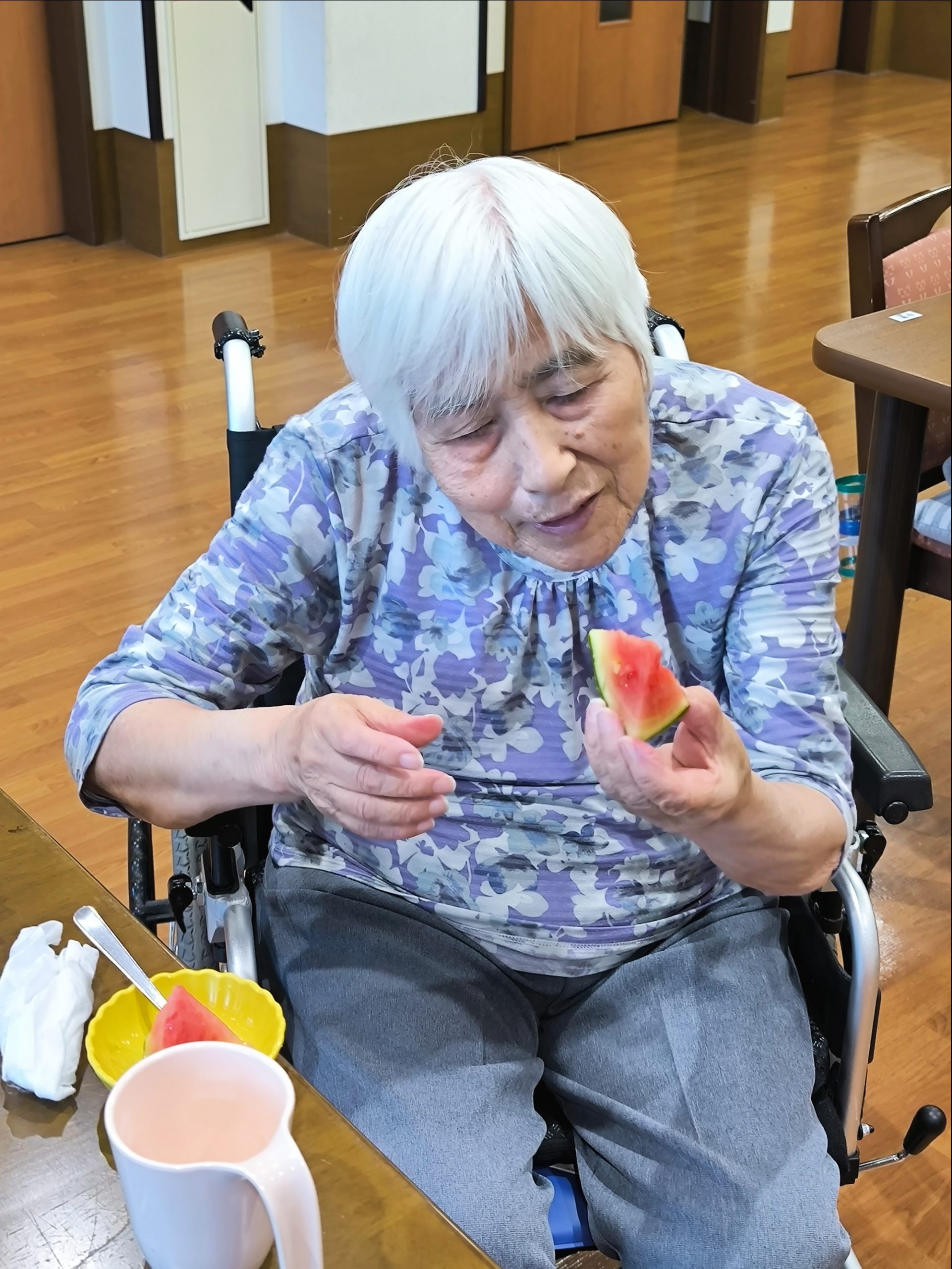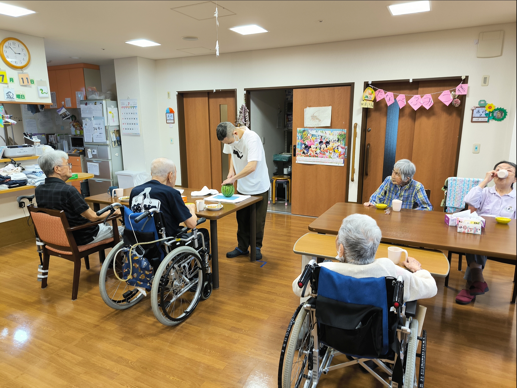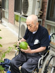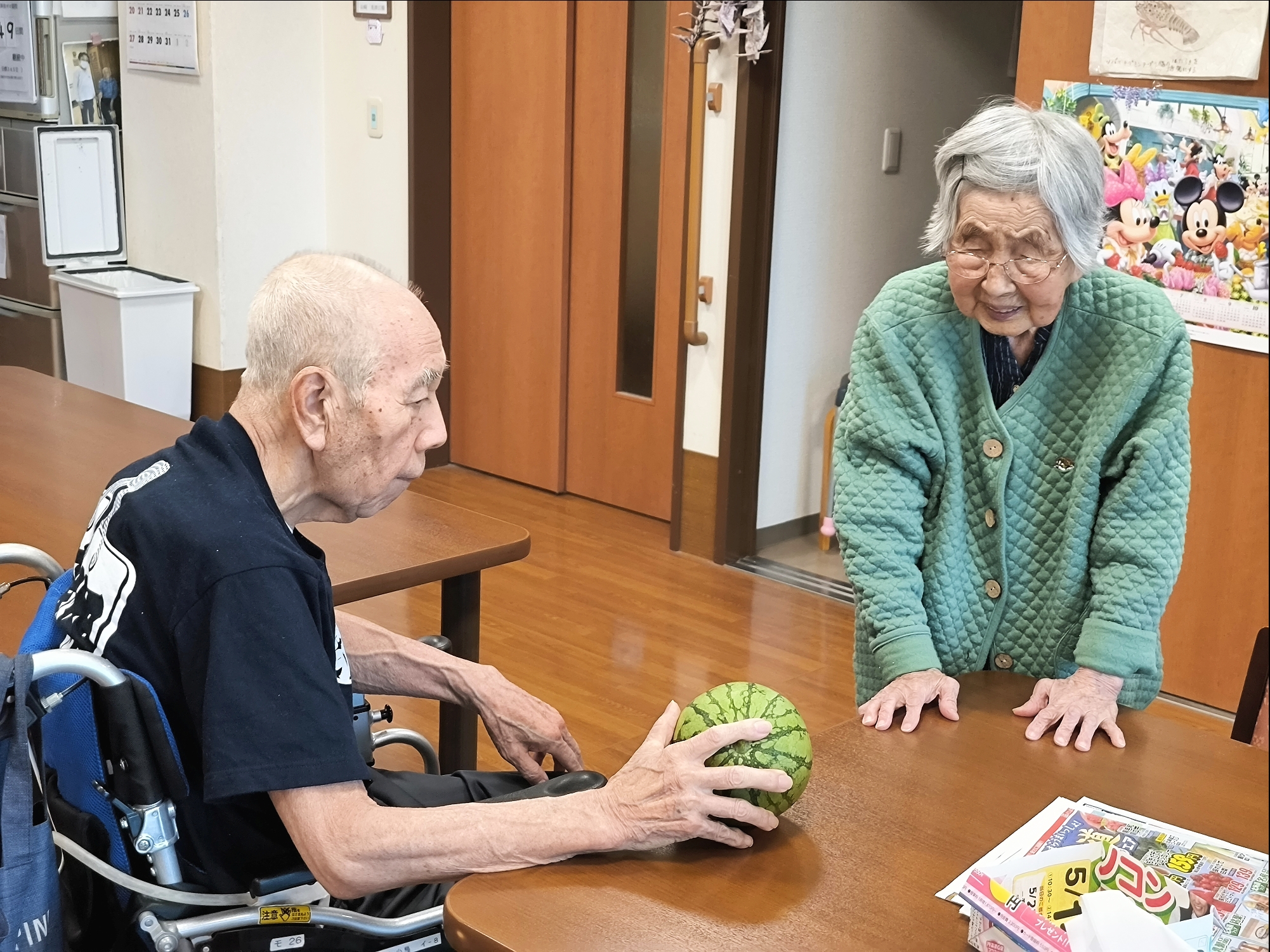 夏を代表する果物と言えば、スイカ!スパーマーケットでも出回っている今、みどりの風鶴ヶ島でも、収穫を行いました!