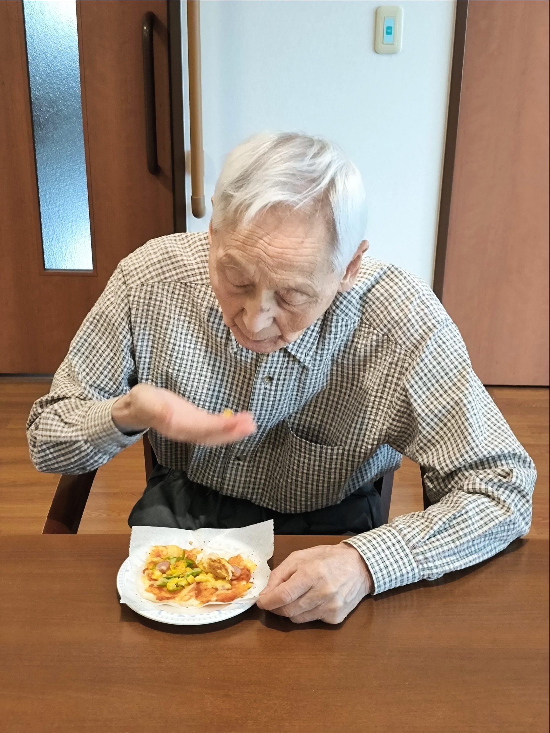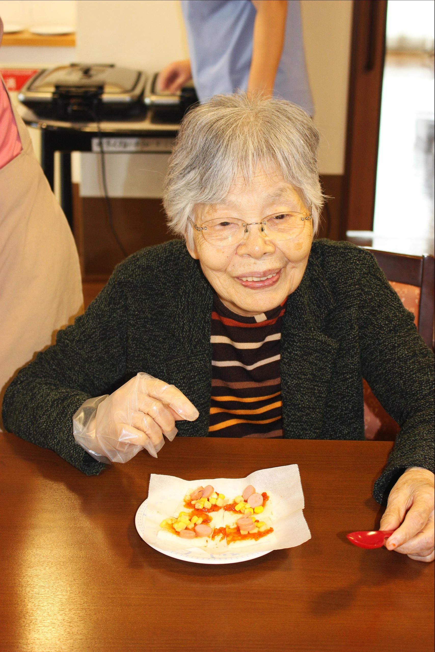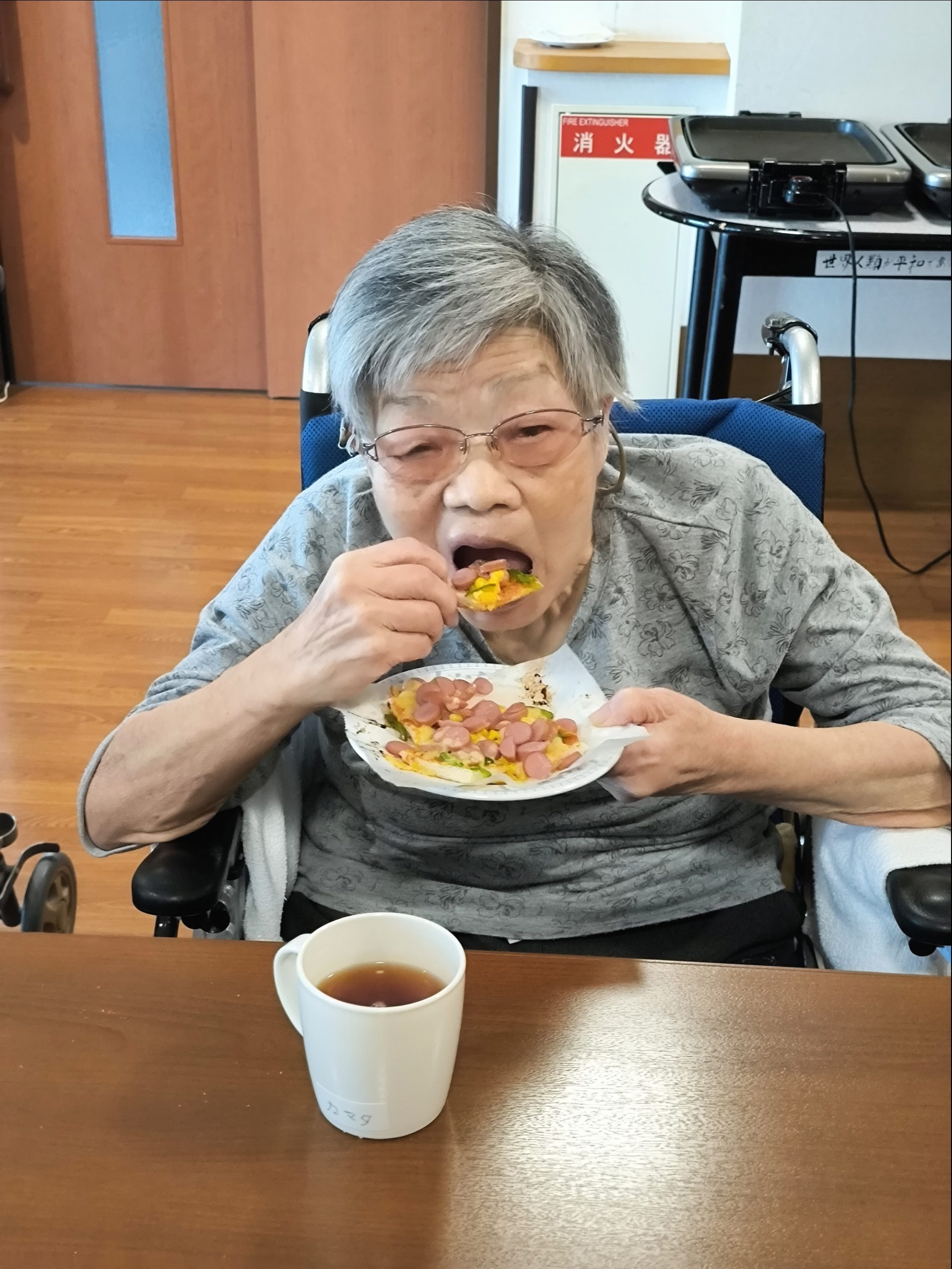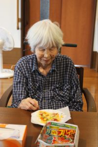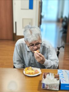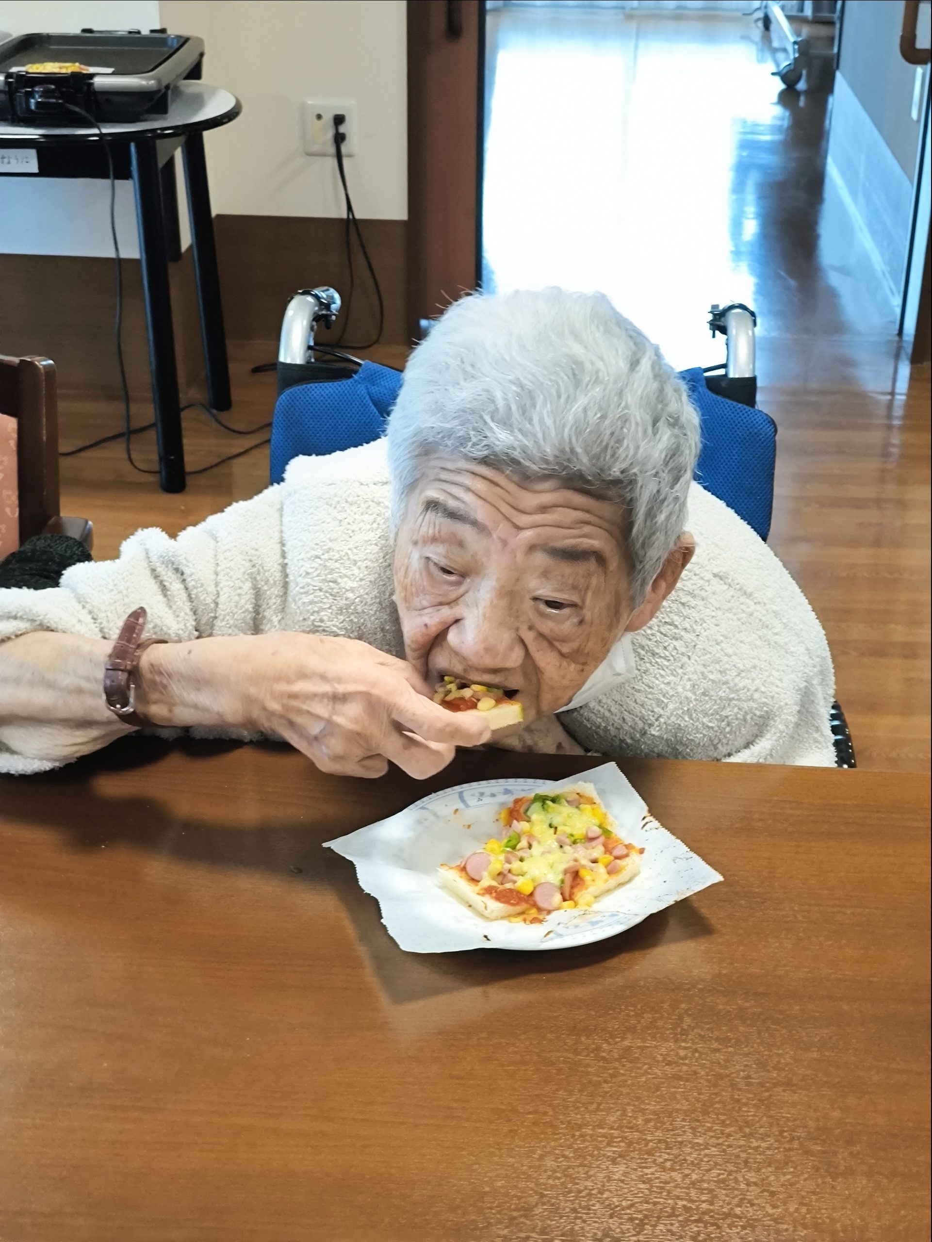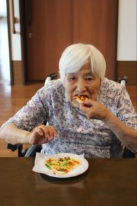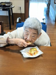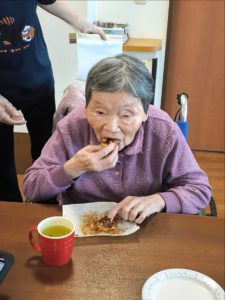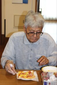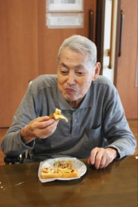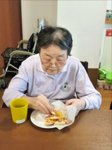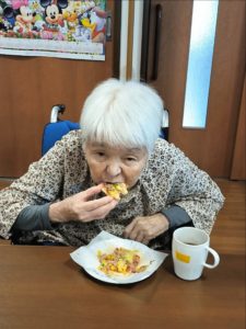 らーめん、ケーキの後は、ピザトースト!本館3階 藤袴・早蕨ユニットでは、それぞれ作って、食べました!