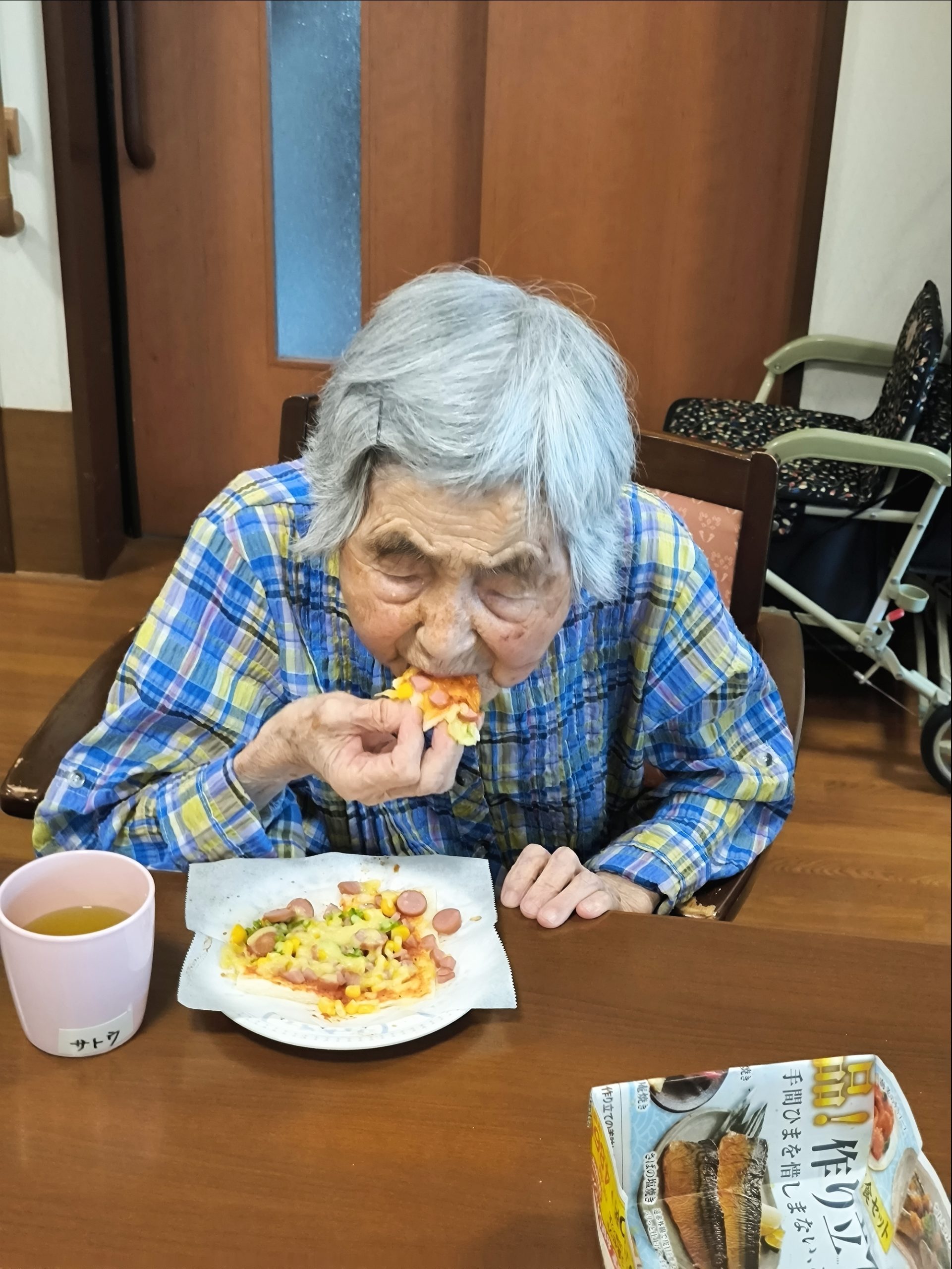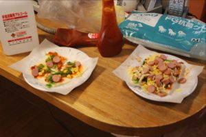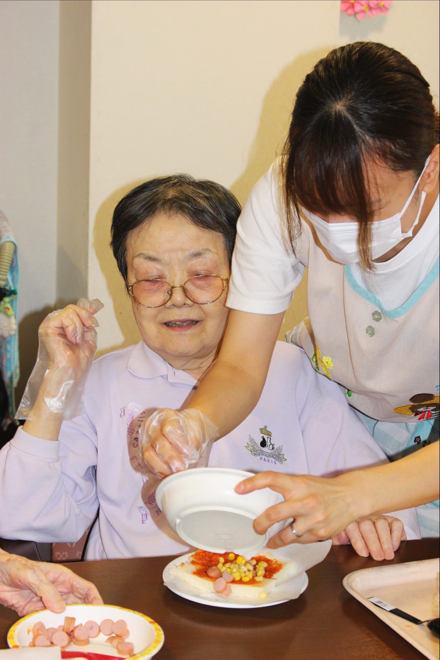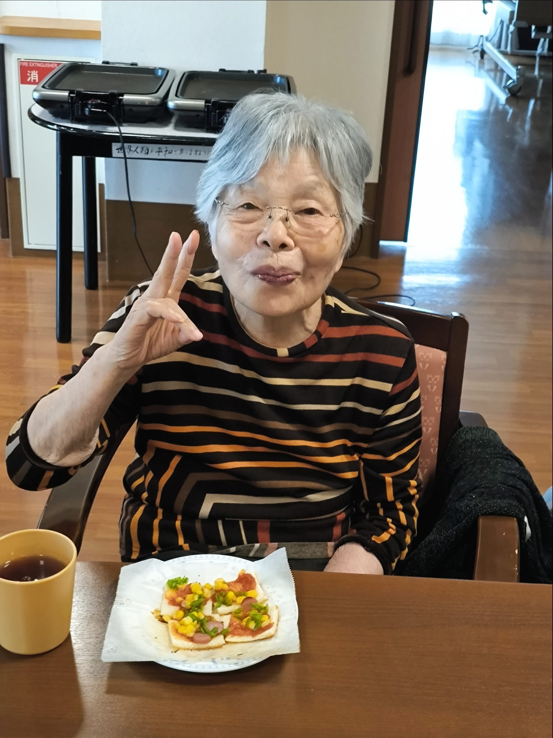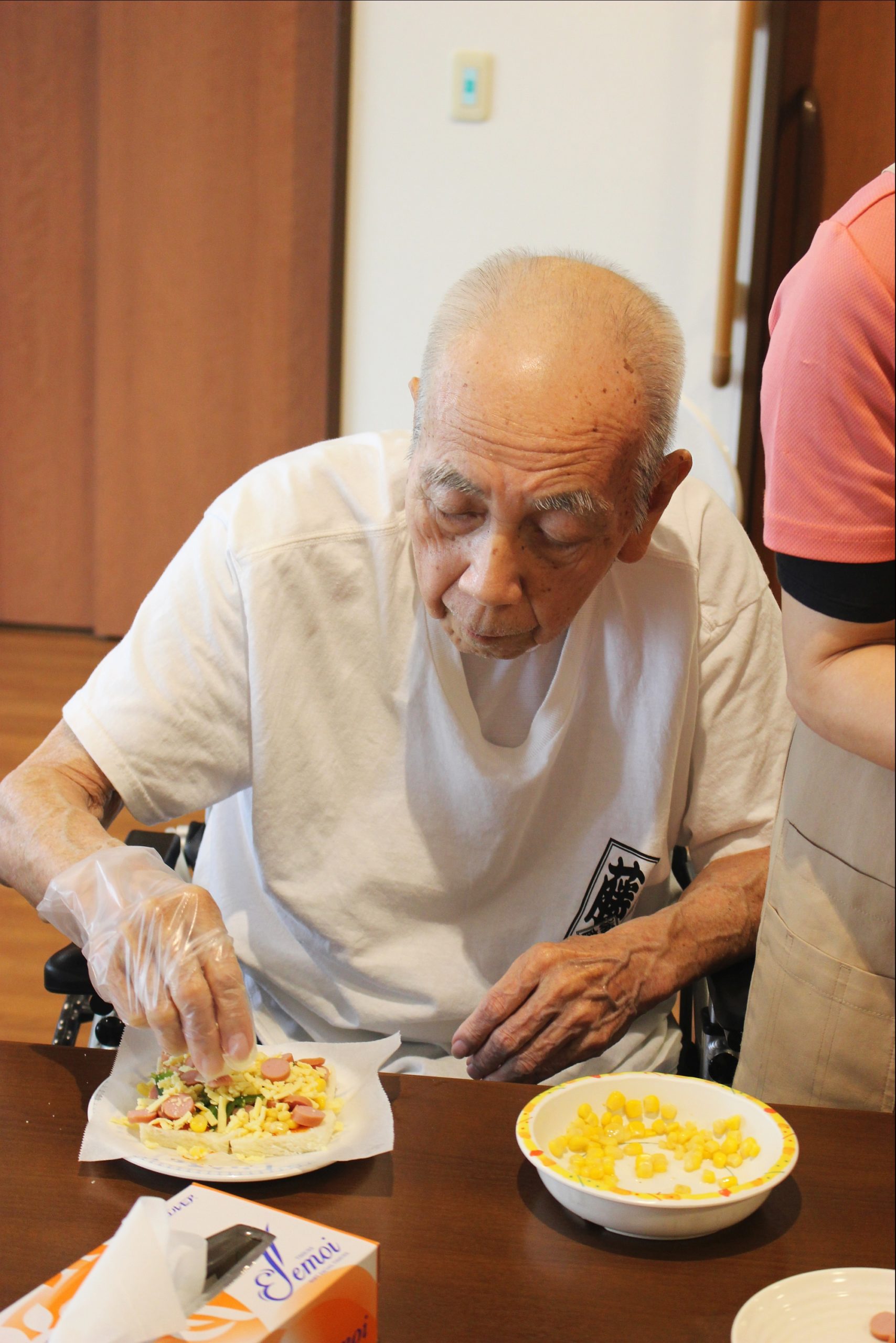 らーめん、ケーキの後は、ピザトースト!本館3階 藤袴・早蕨ユニットでは、それぞれ作って、食べました!