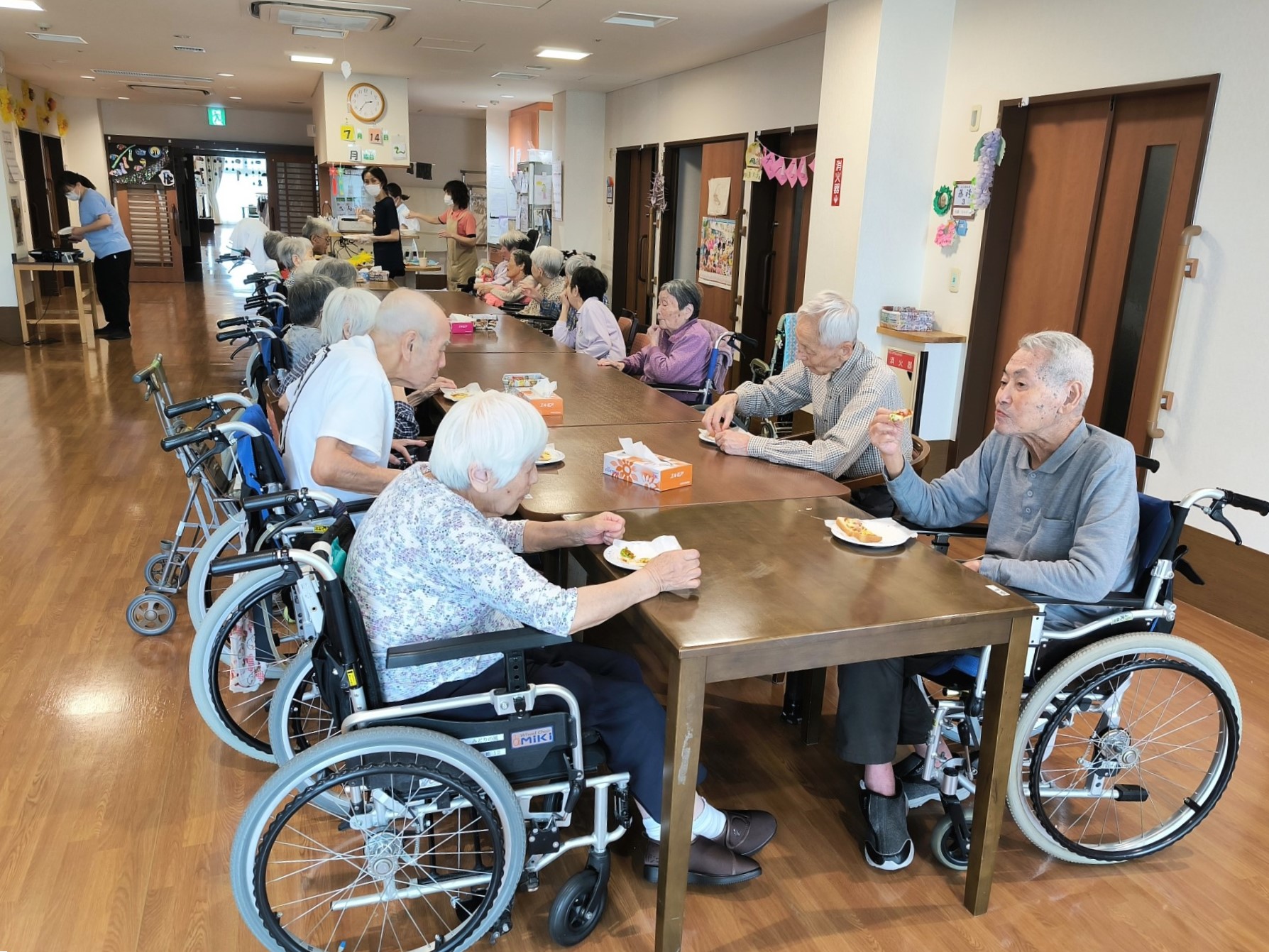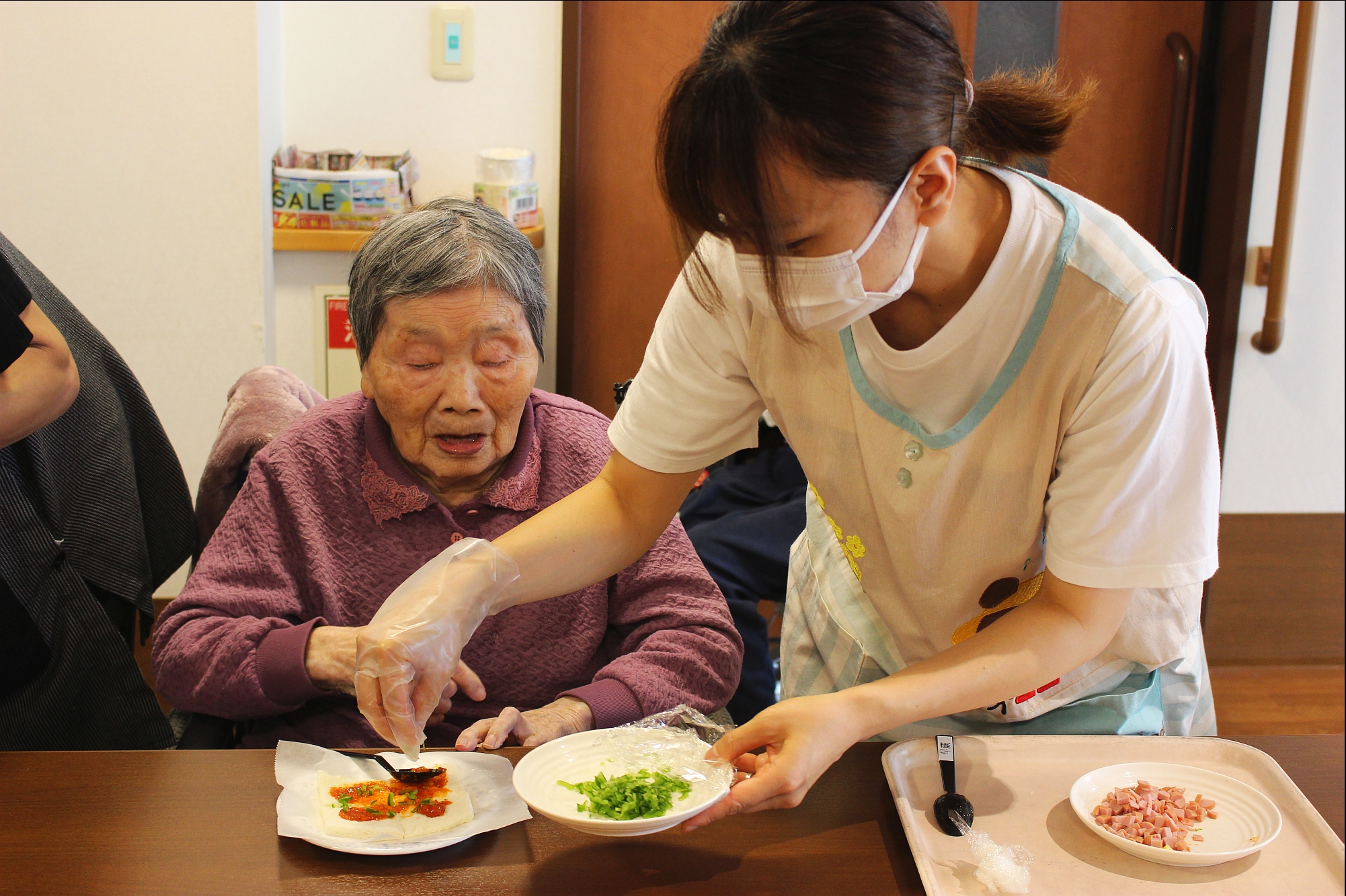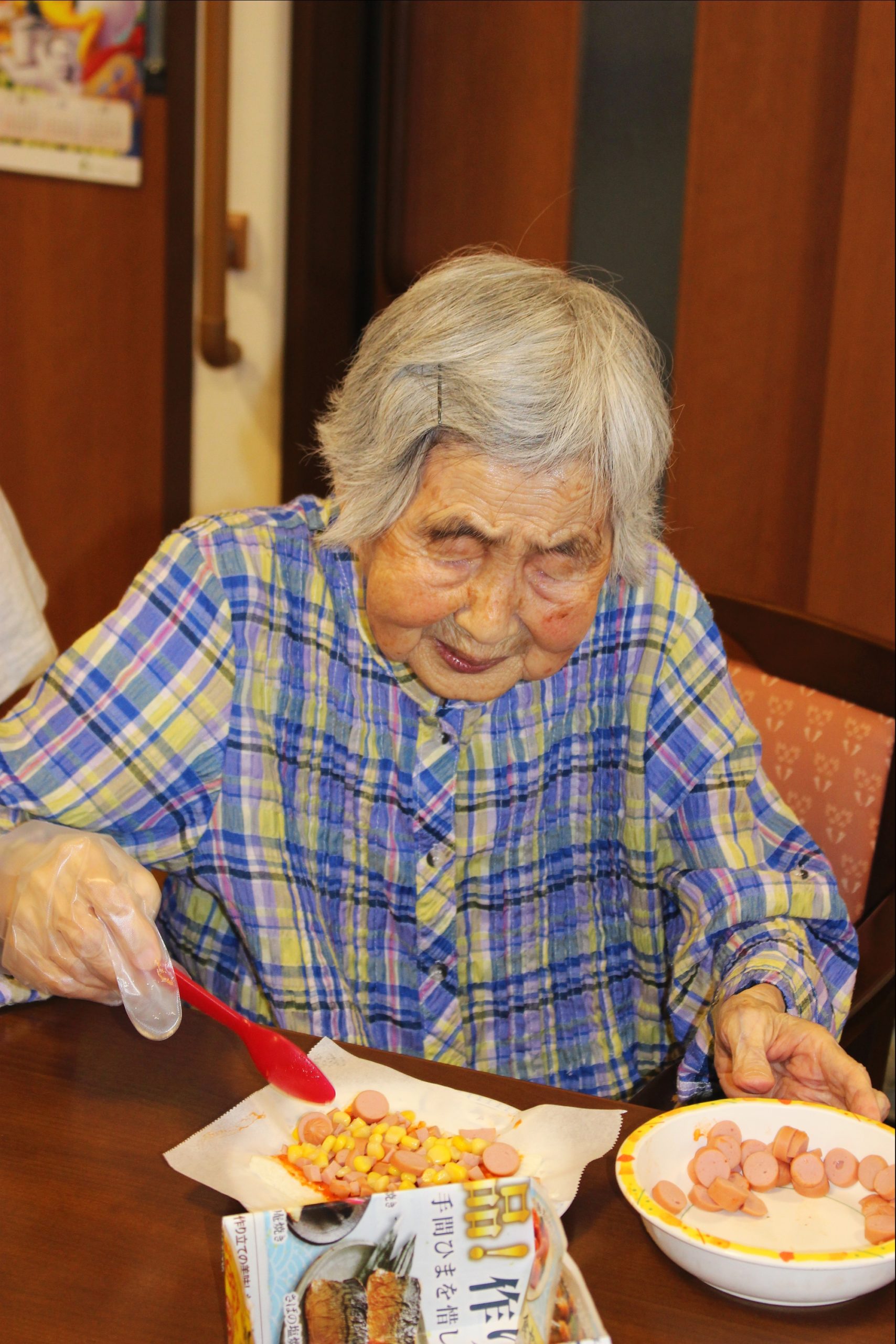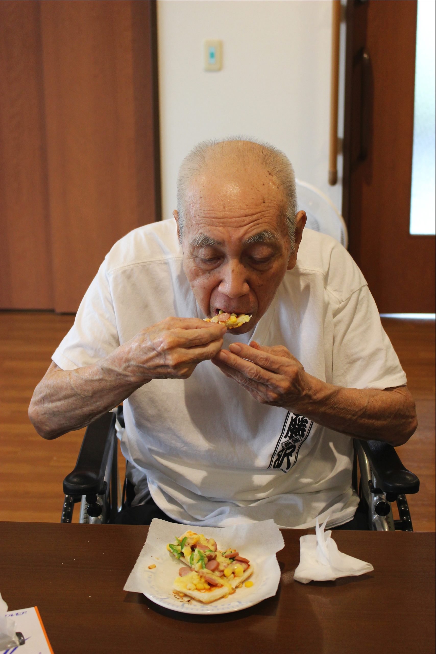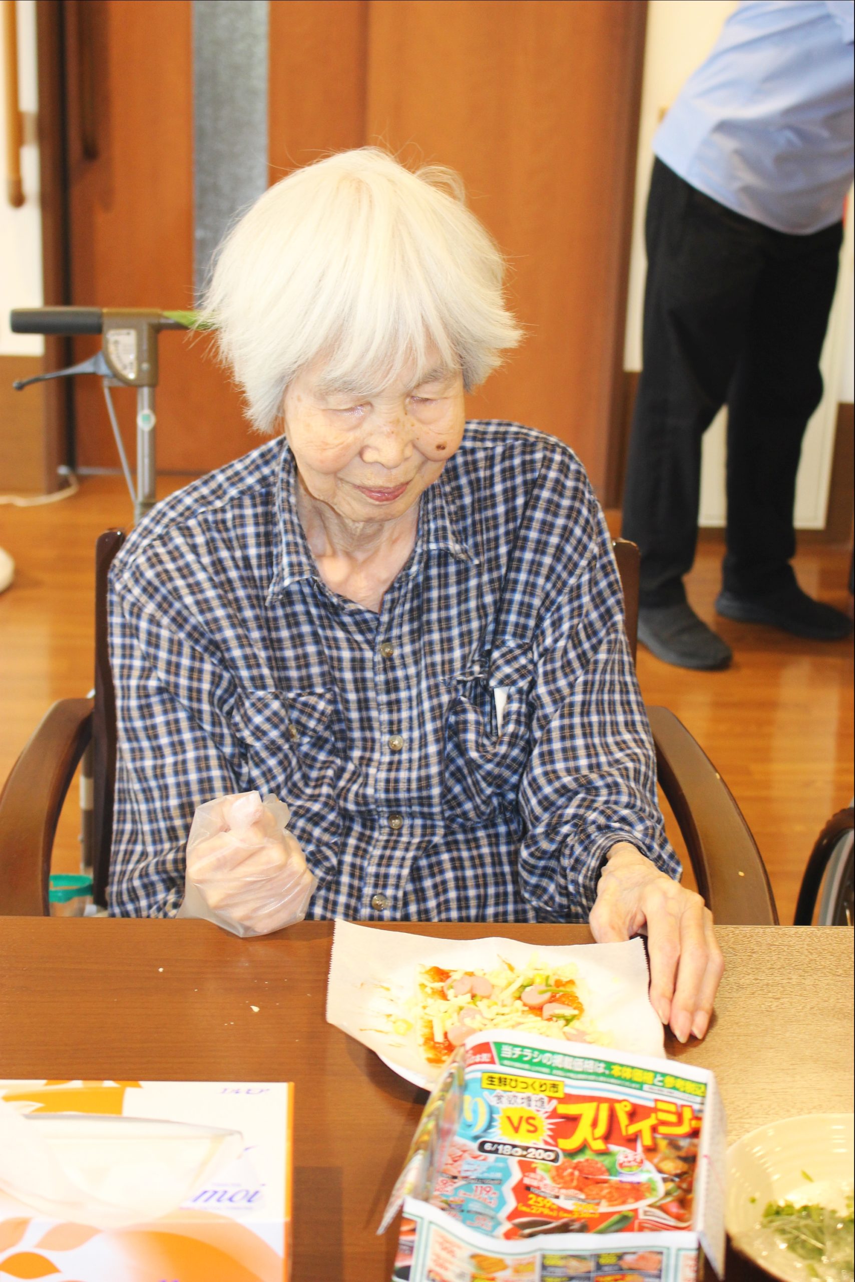 らーめん、ケーキの後は、ピザトースト!本館3階 藤袴・早蕨ユニットでは、それぞれ作って、食べました!