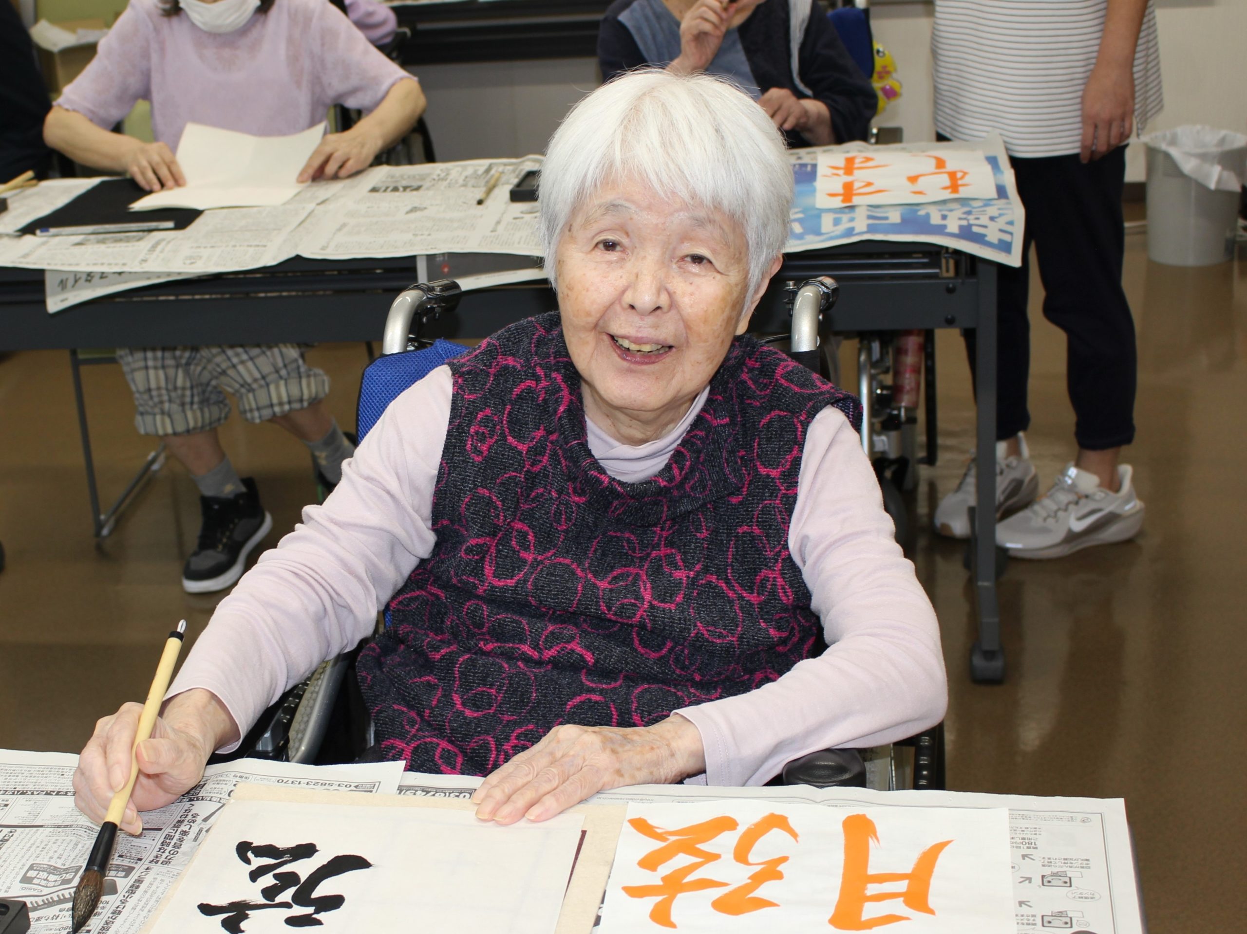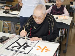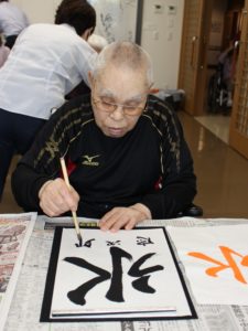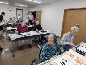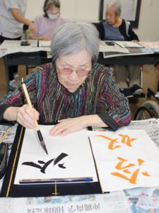 みどりの風鶴ヶ島では、様々なレクリエーションを行っています!毎月開催されている書道クラブには、8月も沢山の方々が参加されました!