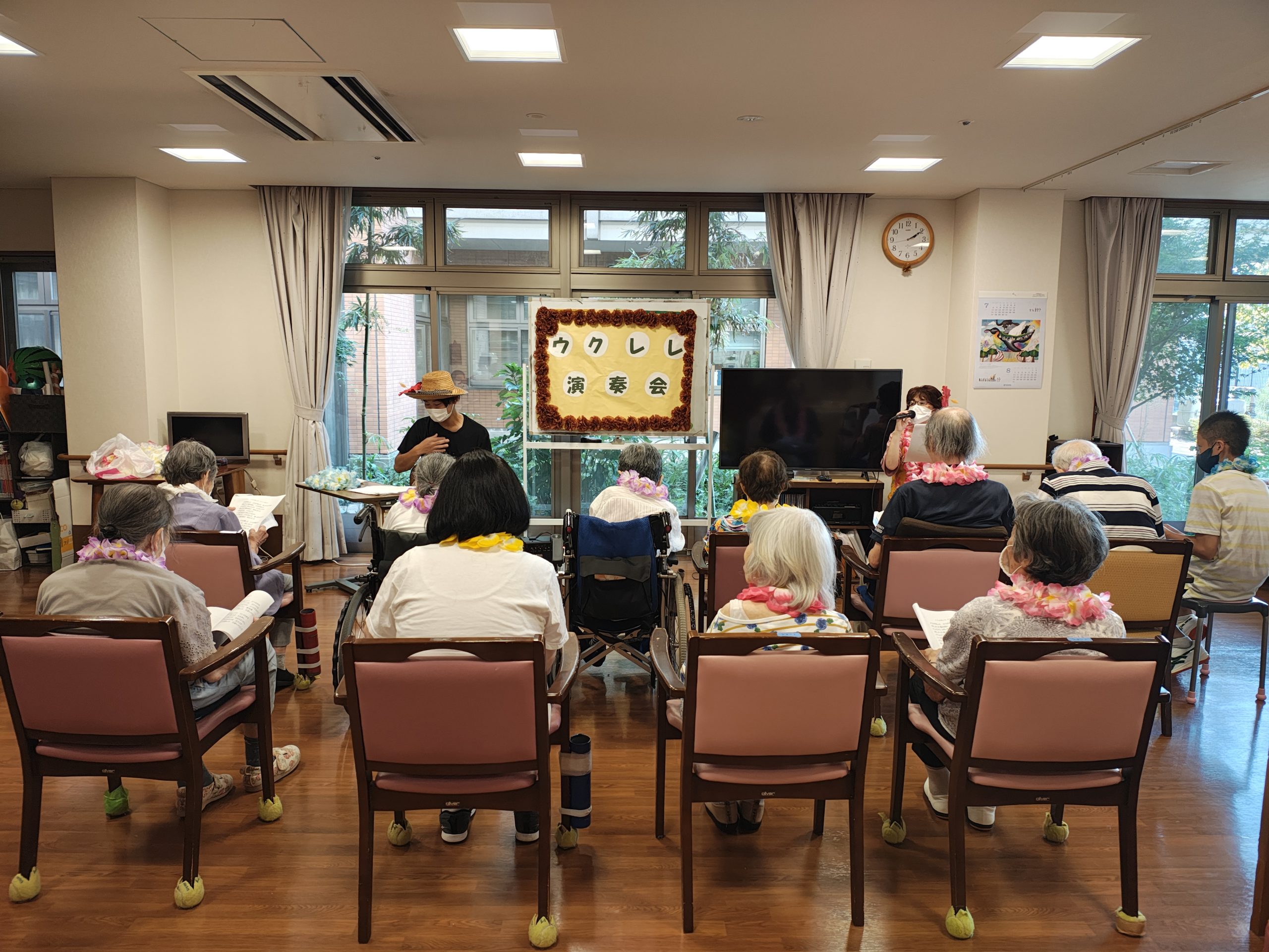 一方、ショートステイフロアでは、スタッフによるウクレレ演奏!