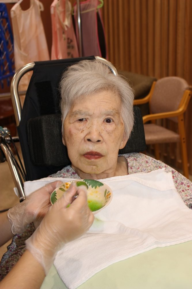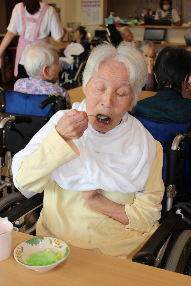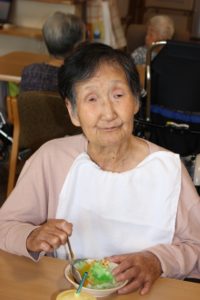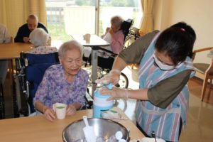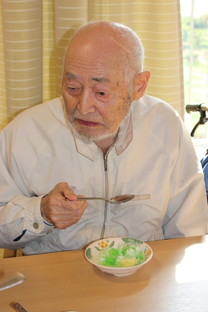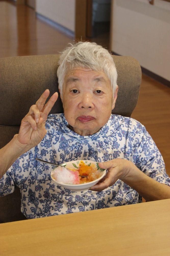 暑ーい日に食べたいのが、冷たーいもの!花と小鳥3階、あやめ・おおるりユニットでは、かき氷を、食べました!
