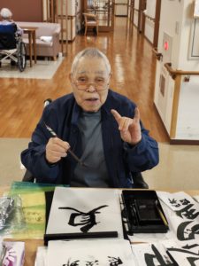 こちらの方は毎朝書道!写真のポーズも決まっています!