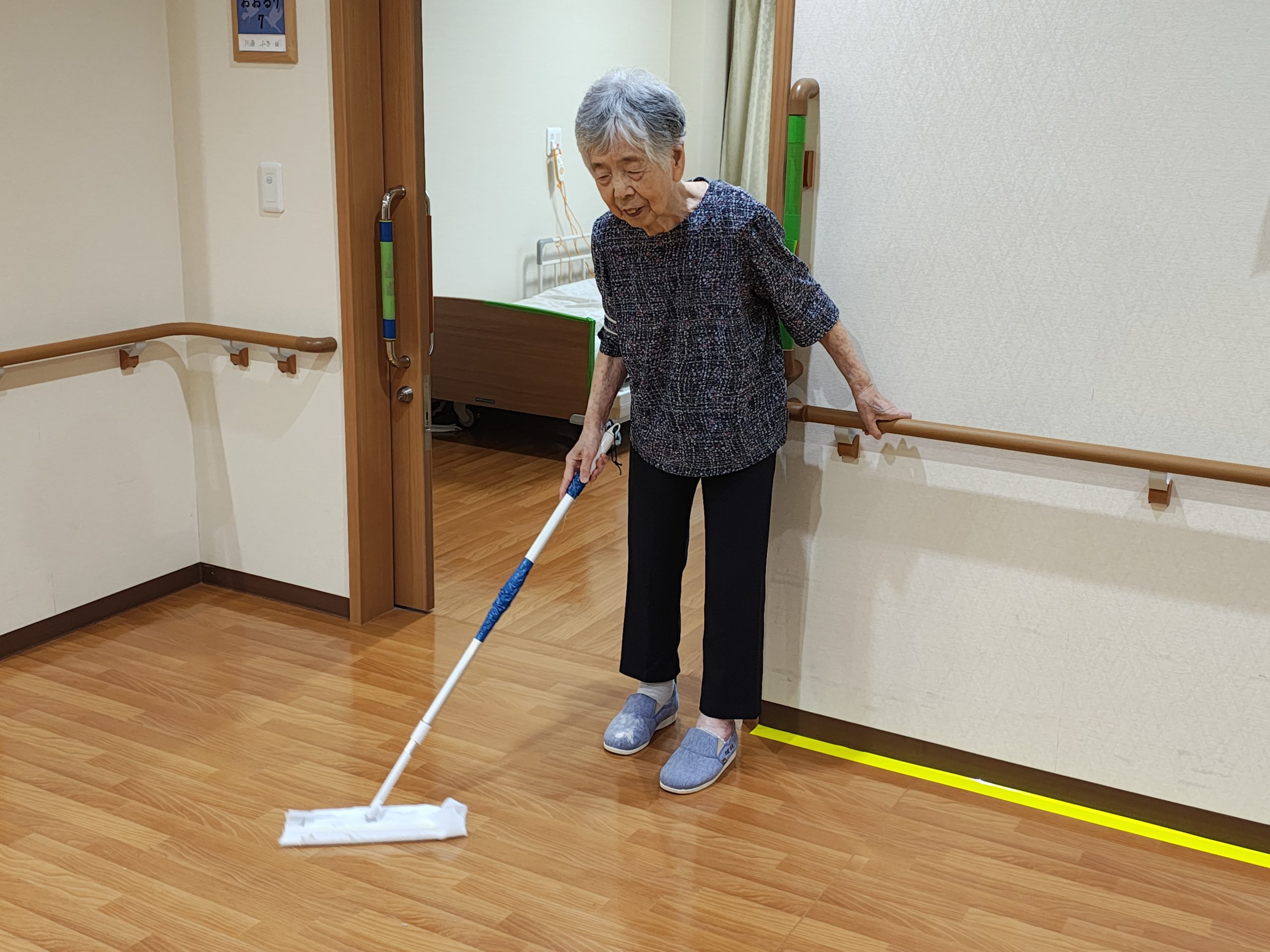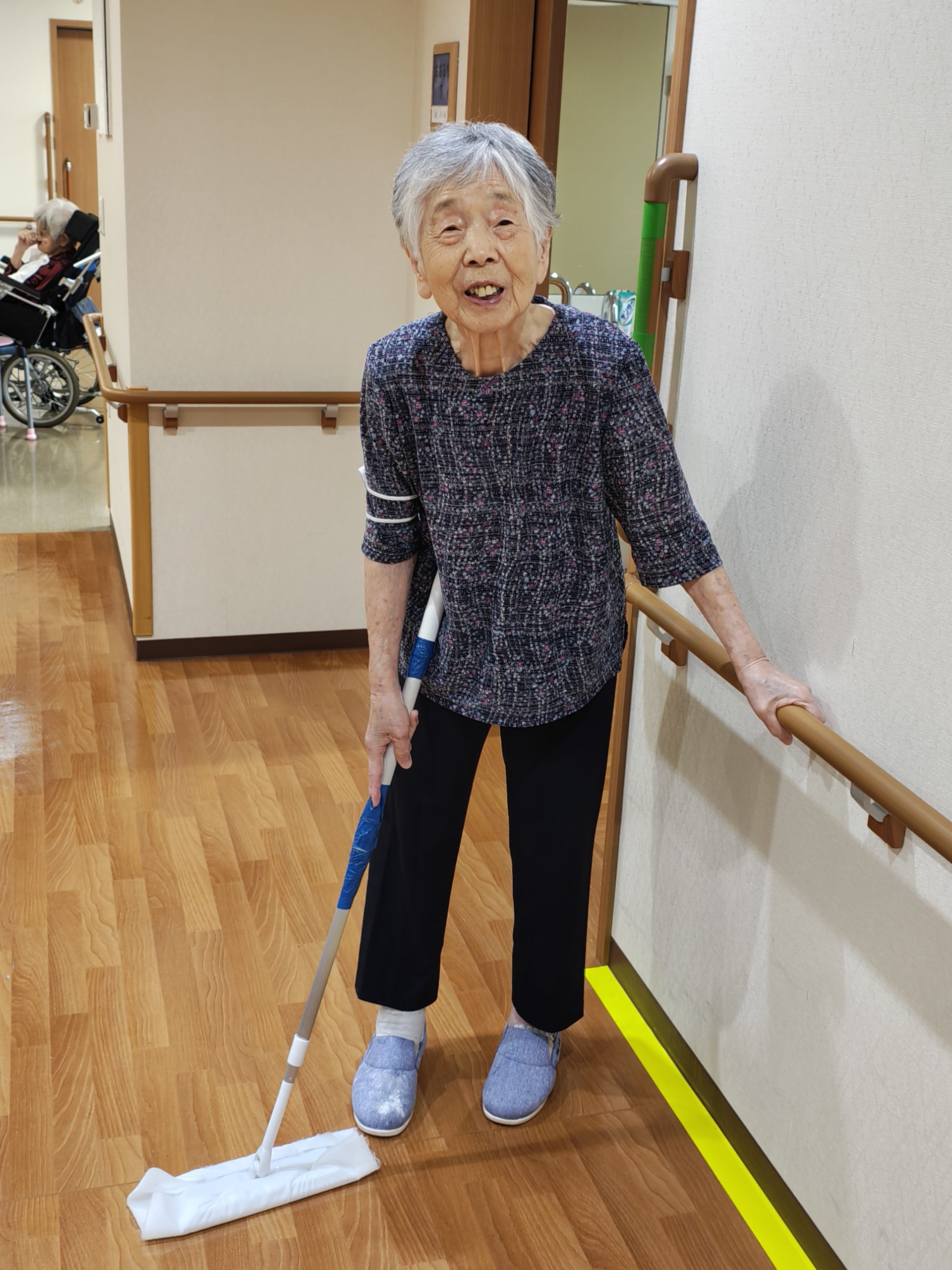 今はその手でモップかけ。自分のお部屋から前の廊下まで、毎日拭いています!
