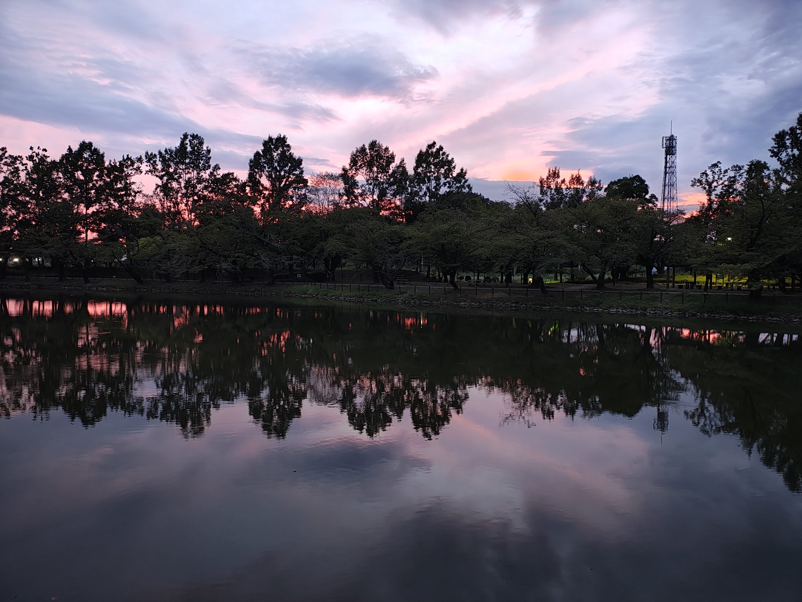 ホーム近くの鶴ヶ島運動公園では、夕日がきれい