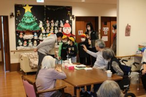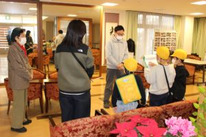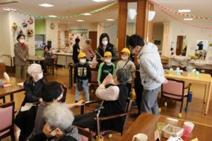 デイサービス、ショートステイフロアも見学、利用者の方ともふれあいました!