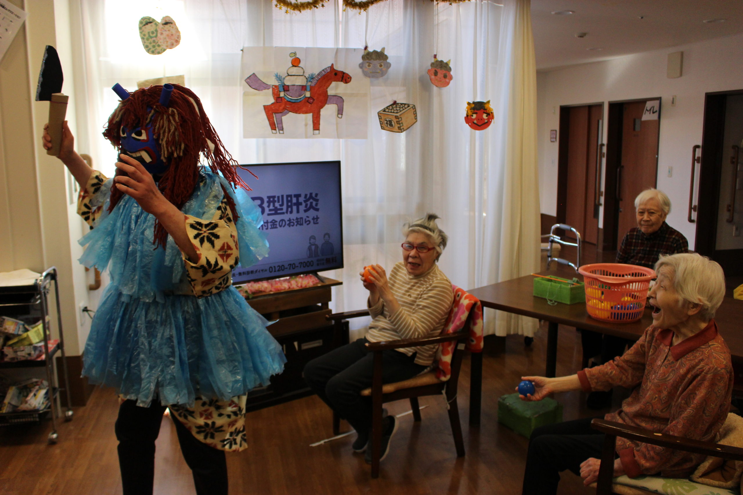 2月の行事と言えば、節分、みどりの風鶴ヶ島では、今年も豆まきを行いました!