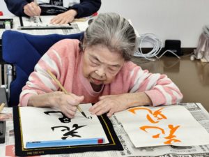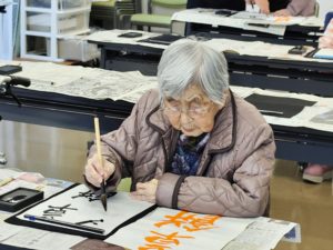 一方、こちらも恒例の書道クラブ!3月も一生懸命書きました!
