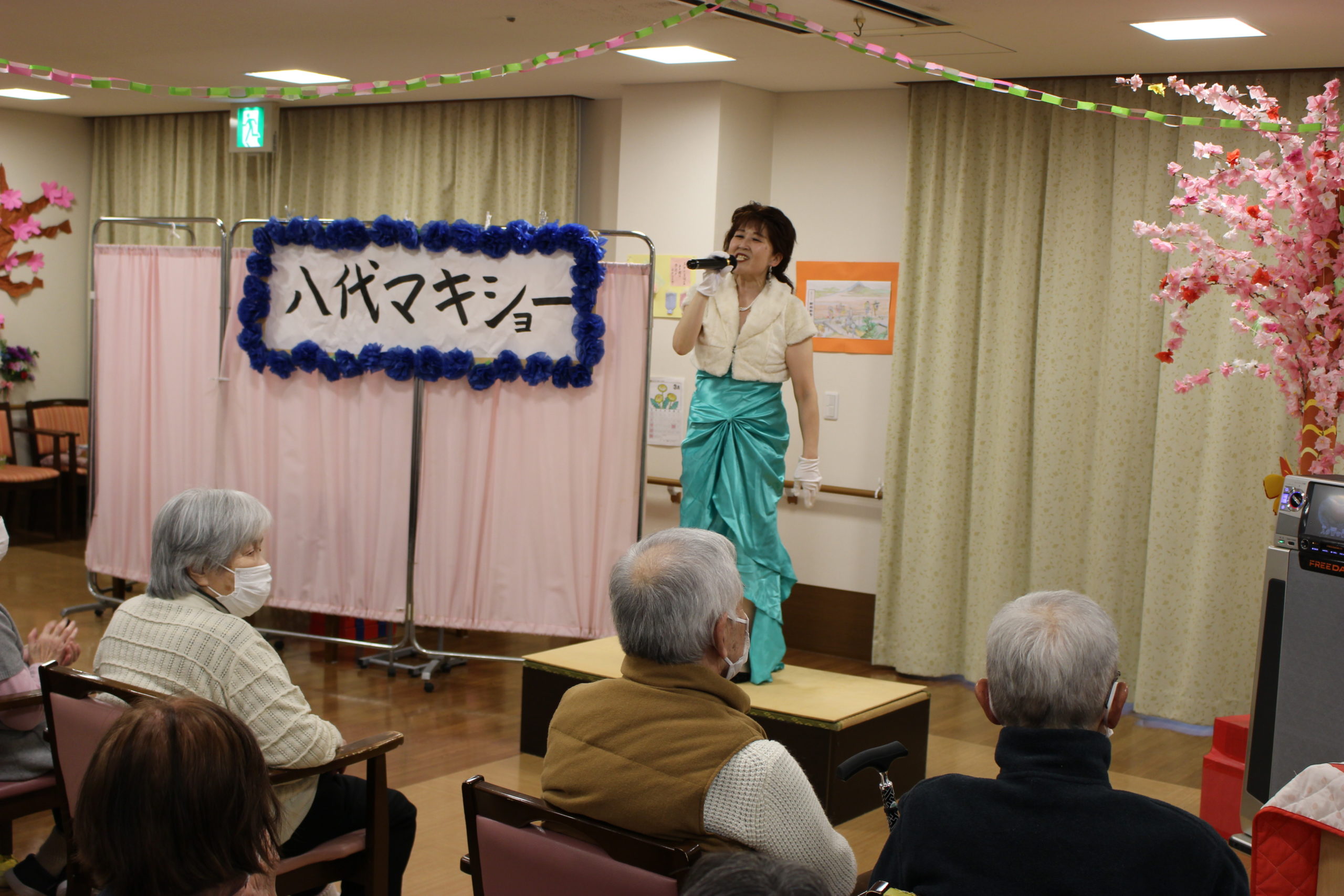 みどりの風鶴ヶ島の、歌謡ショー!今回はデイサービスフロアを会場にして行いました!
